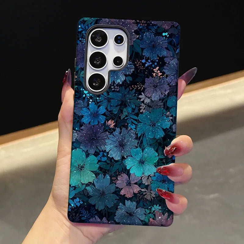 2 IN 1 Film shell Retro Flower Cover For Samsung S25 S24 S23 S22 S21 Plus Ultra S25 Edge S20 FE A56 A16 15 26 36 Phone Case