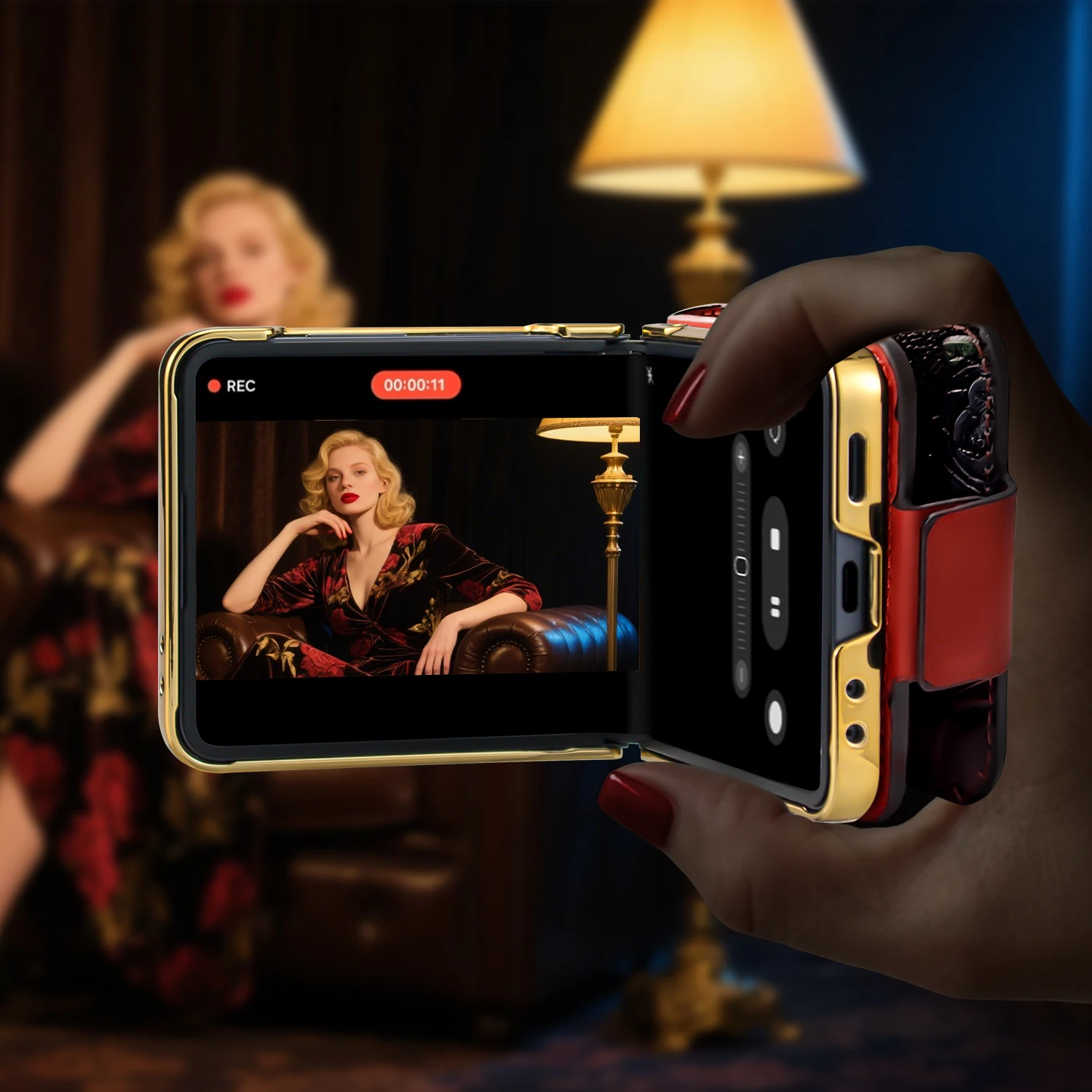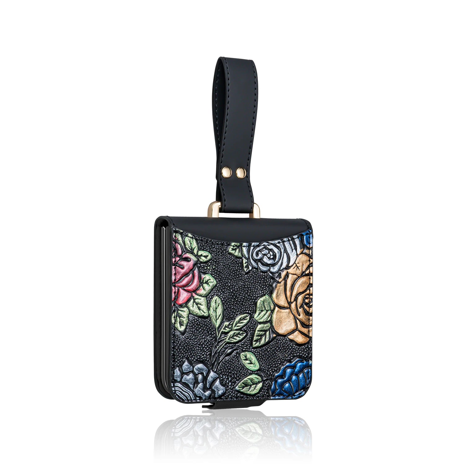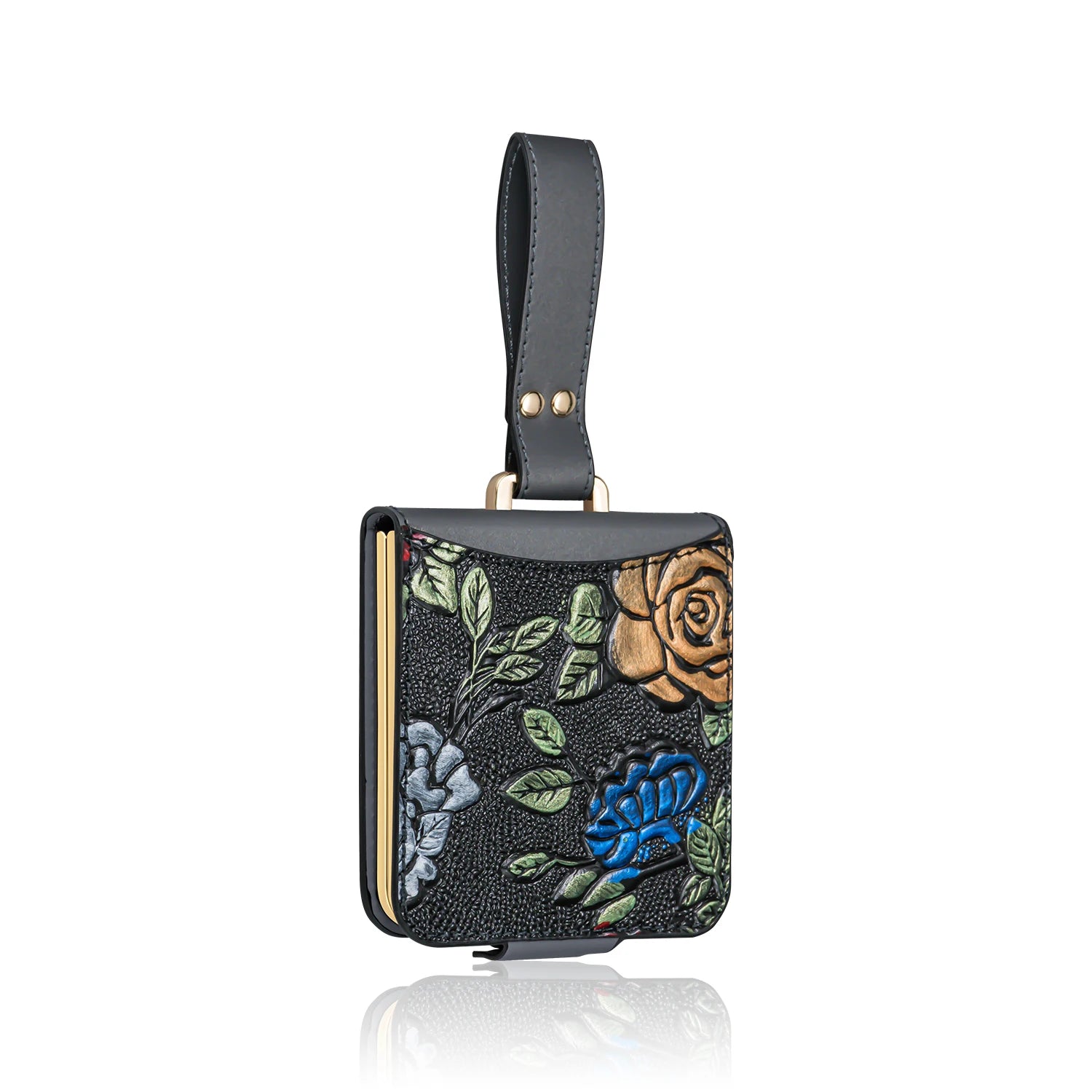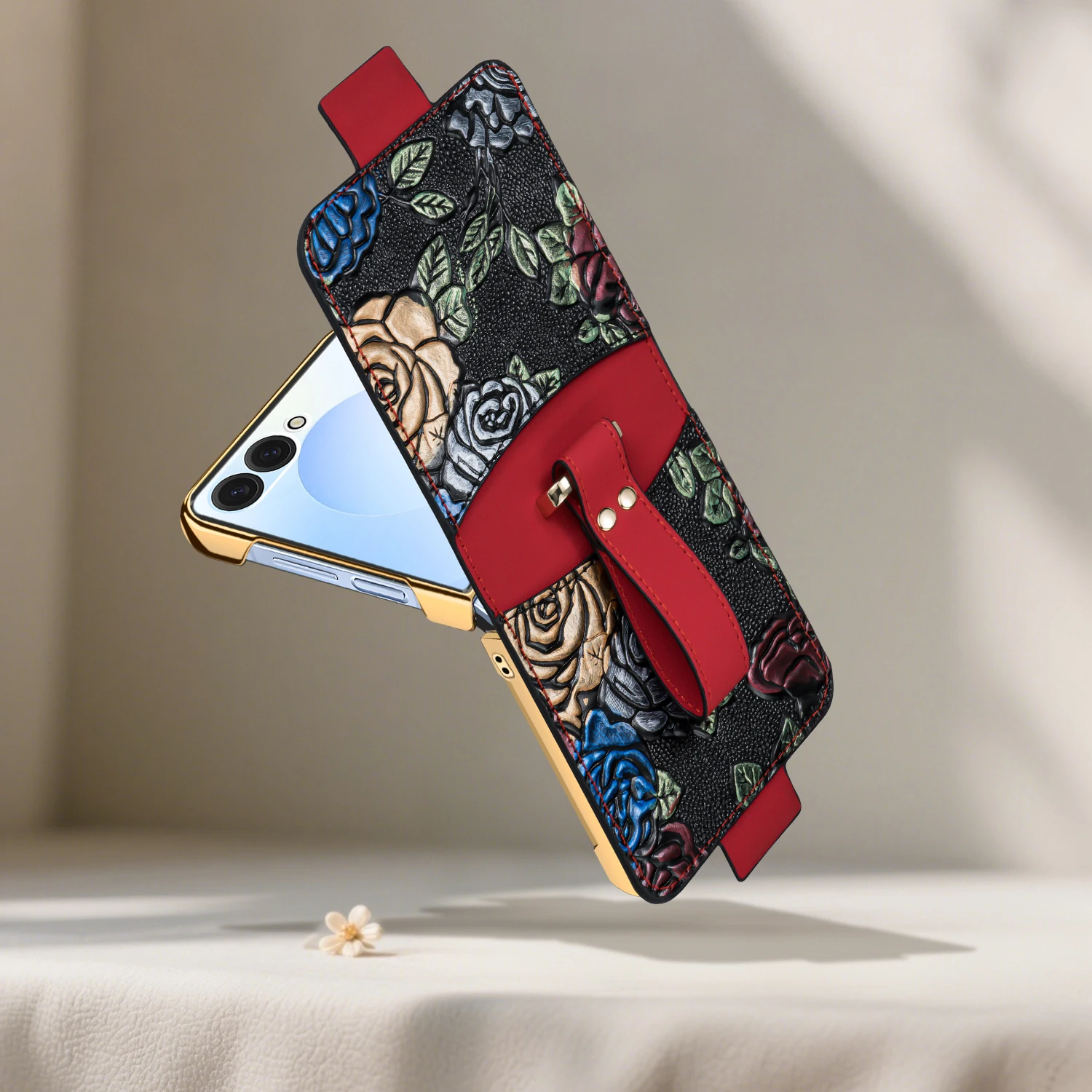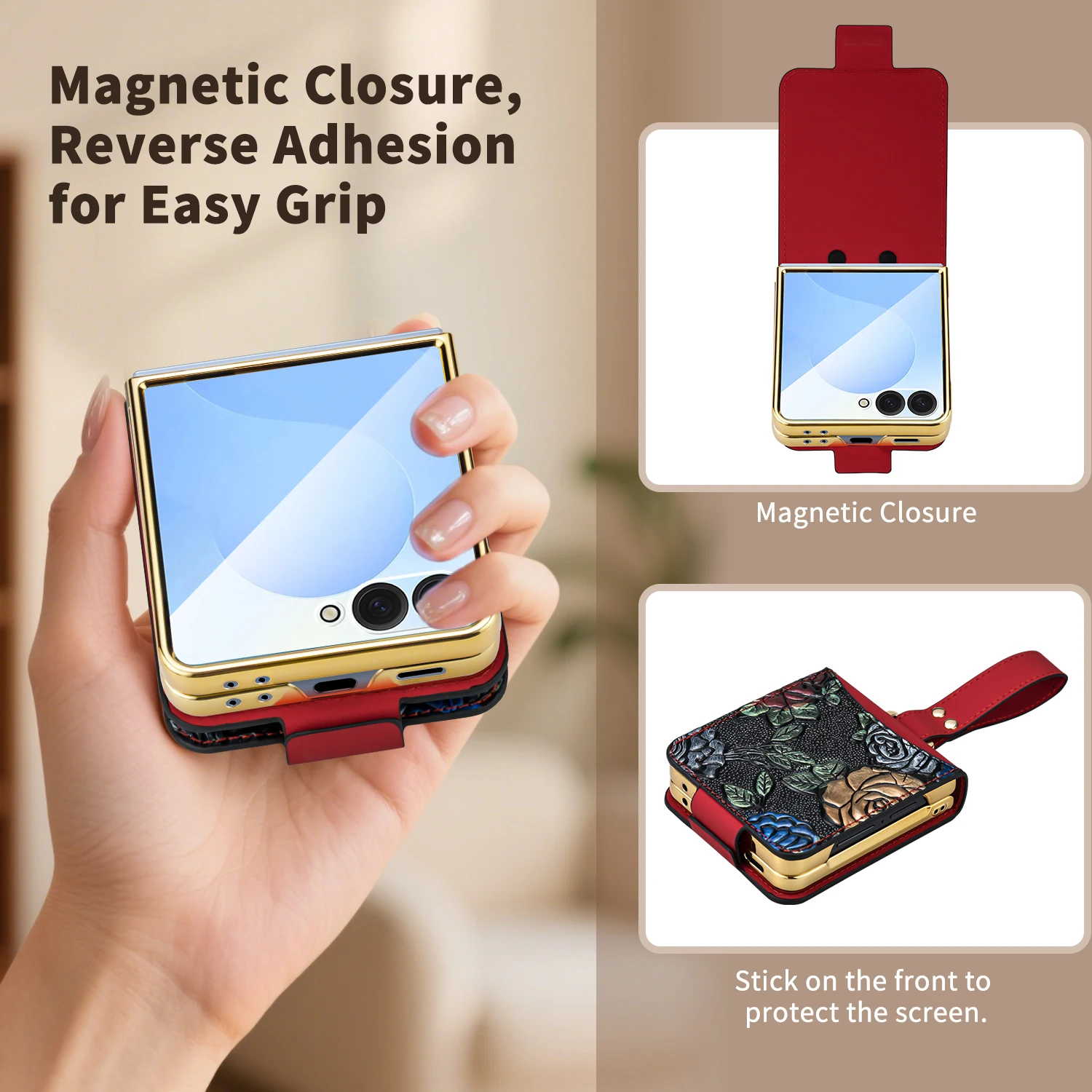 3D Relief Painting Design PU Leather Phone Case for Galaxy Z Flip 7/6/5/4/3 with Card Slots And Wrist Strap&Screen Protector