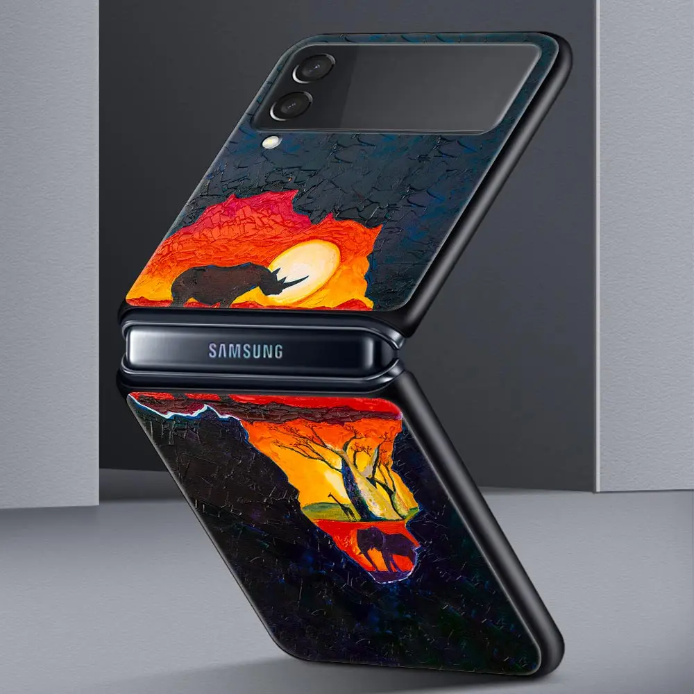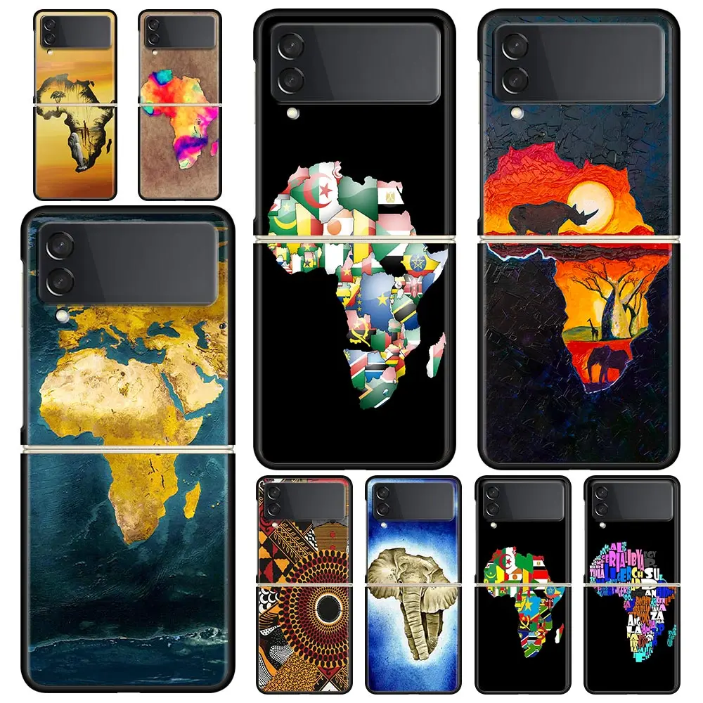 Africa Map Geography Painted Phone Case For Samsung Galaxy Z Flip 6 5 4 3 Shell For Samsung Z Flip3 Flip4 Flip5 Hard PC Cover