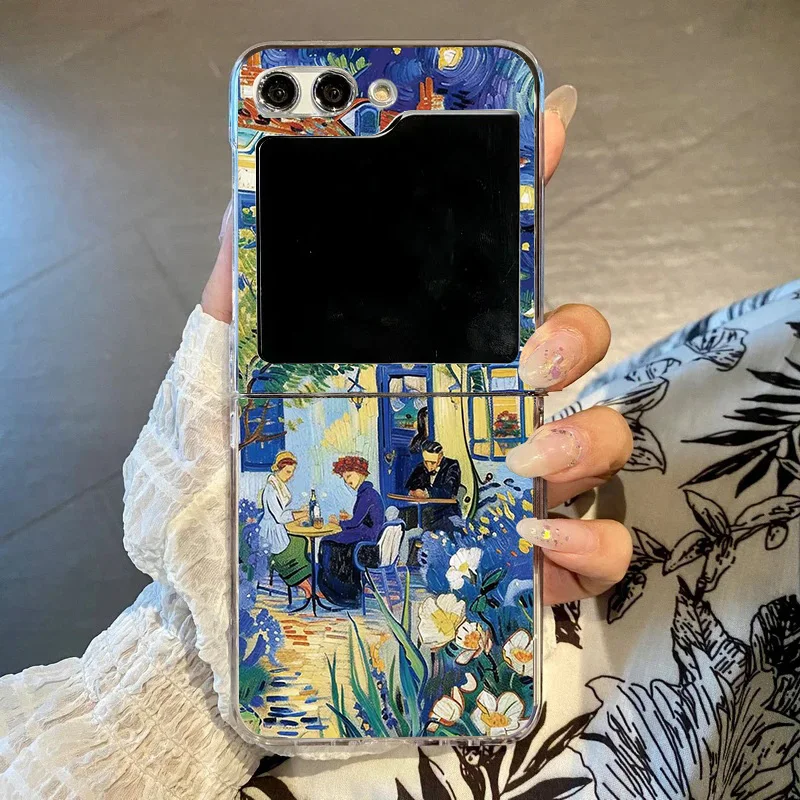 Art Van Gogh Sunflower Cat Oil Painting Phone Case For Samsung Galaxy Z Flip 6 5 7 3 4 Clear Hard PC Folding Cover For Z Flip 5