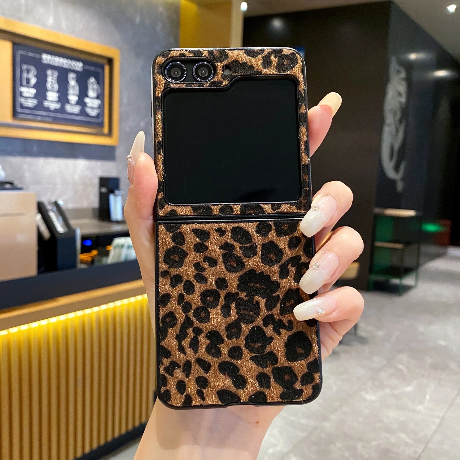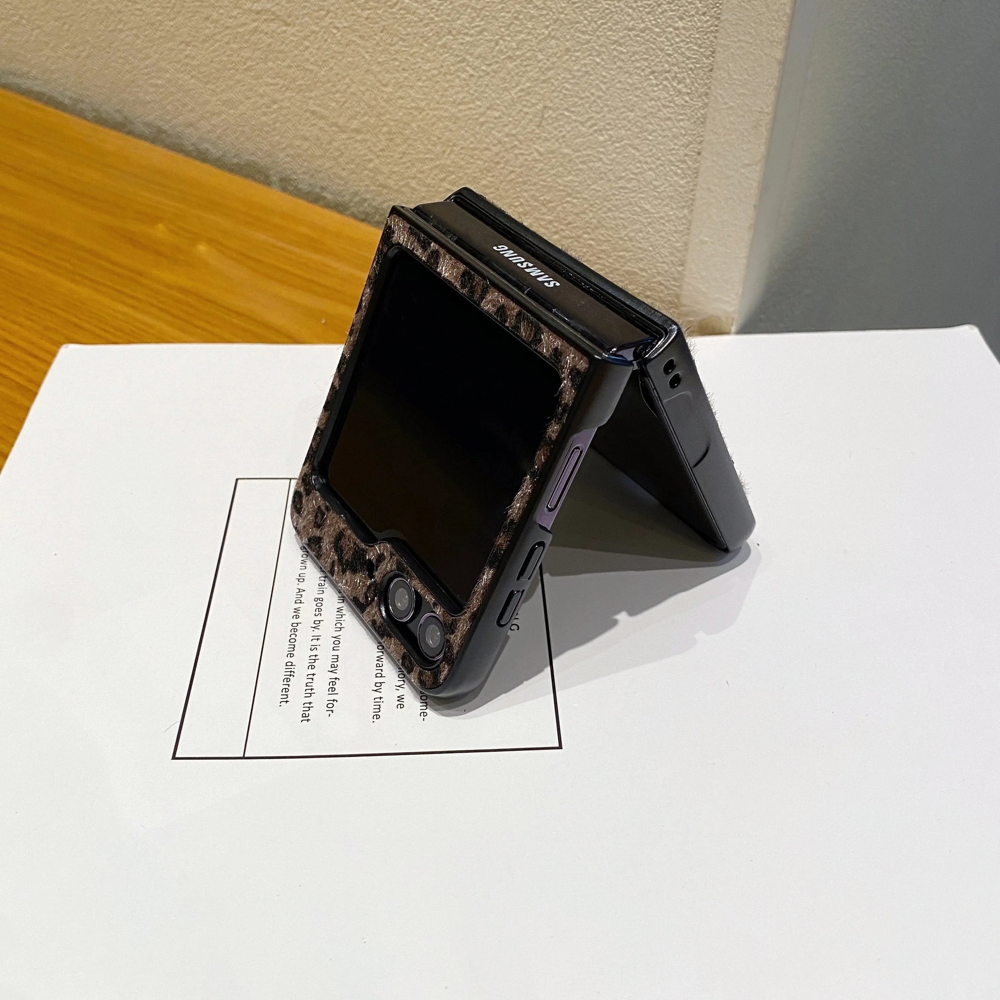 Artificial Flush Leopard Leather Plush Textured Back Cover For Galaxy Z flip 7 6 5 4 3 Phone Case for samsung flip6 flip5