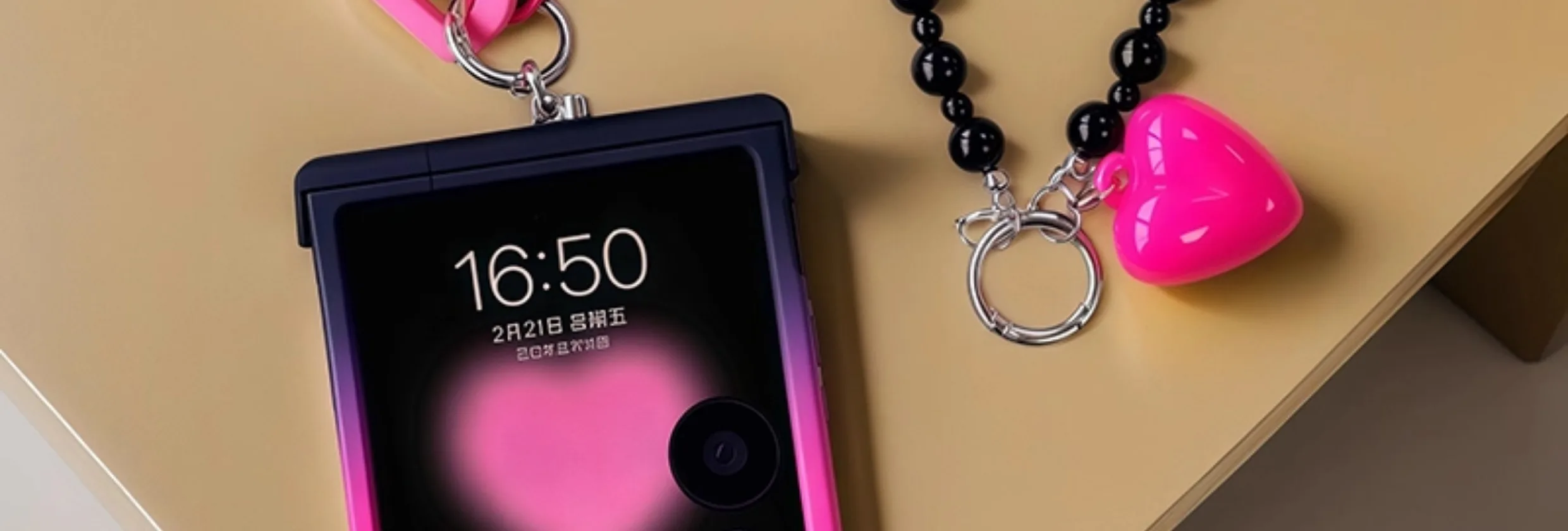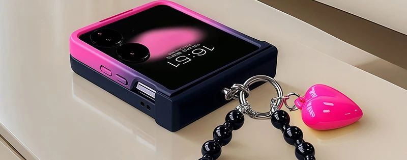 Black Rose Gradient Chain Hinge Case For Samsung Galaxy Z Flip 3 4 5 6 7 For Motorola Razr 50 60 Ultra Xiaomi Mix Flip 2 Cover