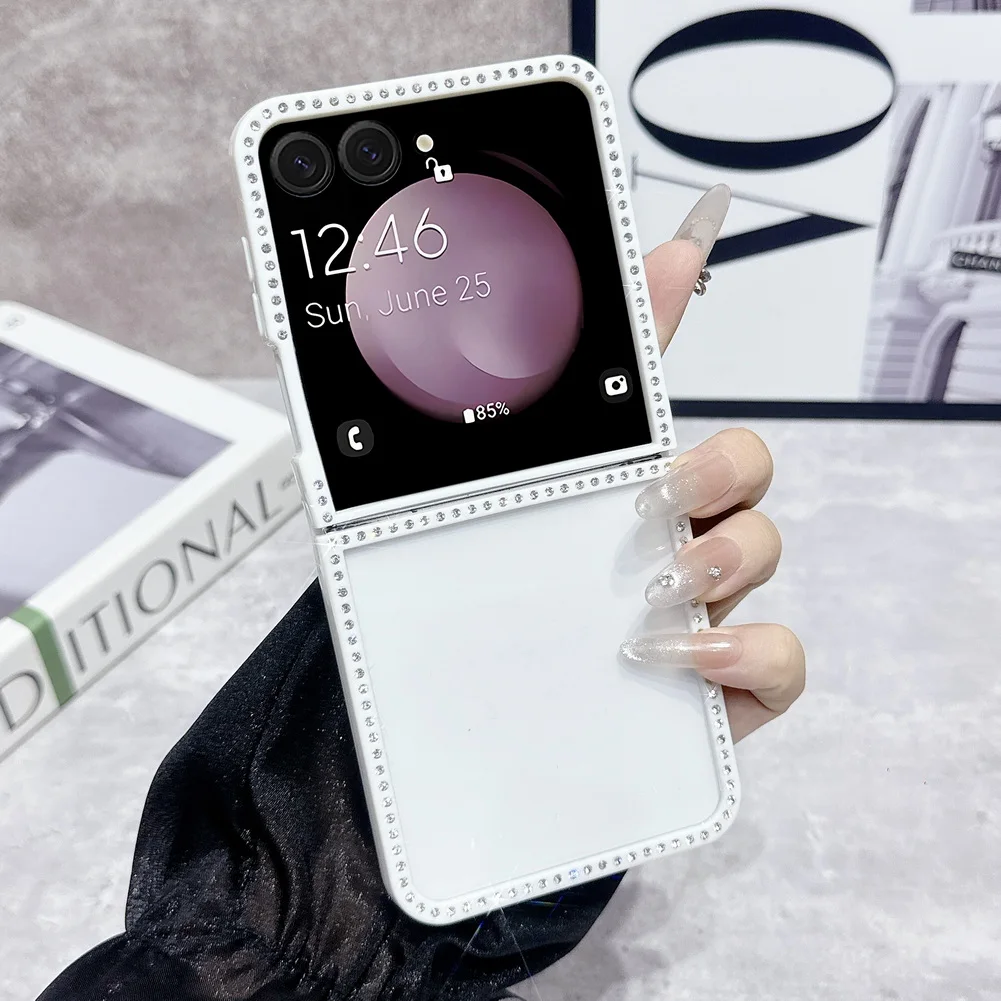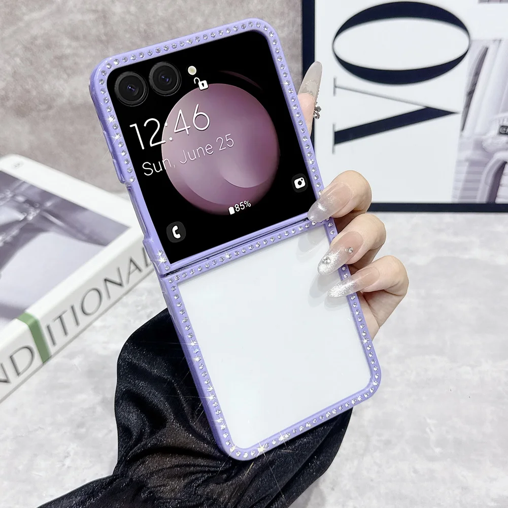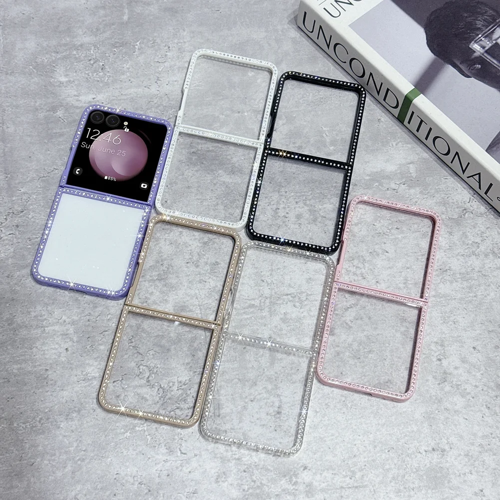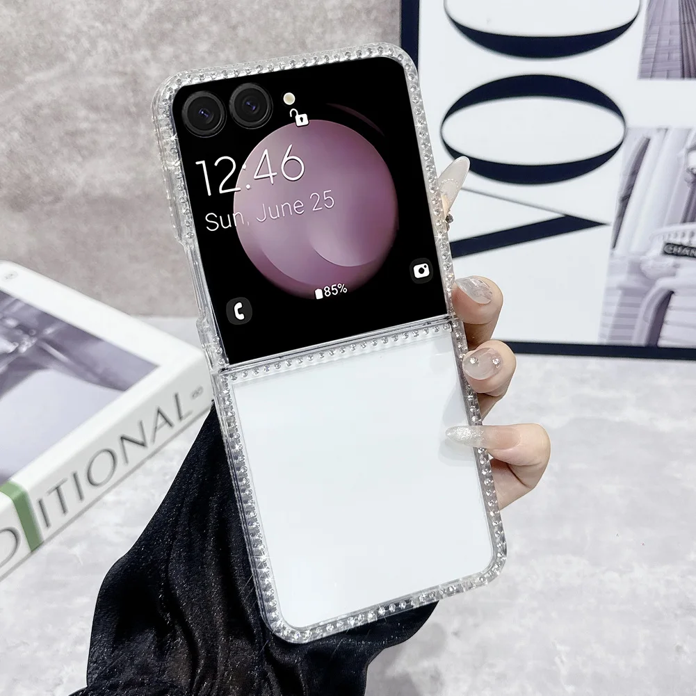 Bling Shiny Rhinestone Bordered Transparent Phone Case For Samsung Z Flip 7 fFlip7 FE Galaxy Z Flip 6 5 4 3 Protect Cover