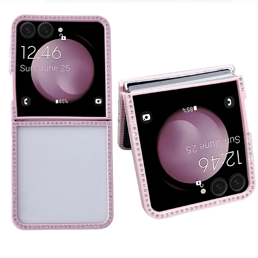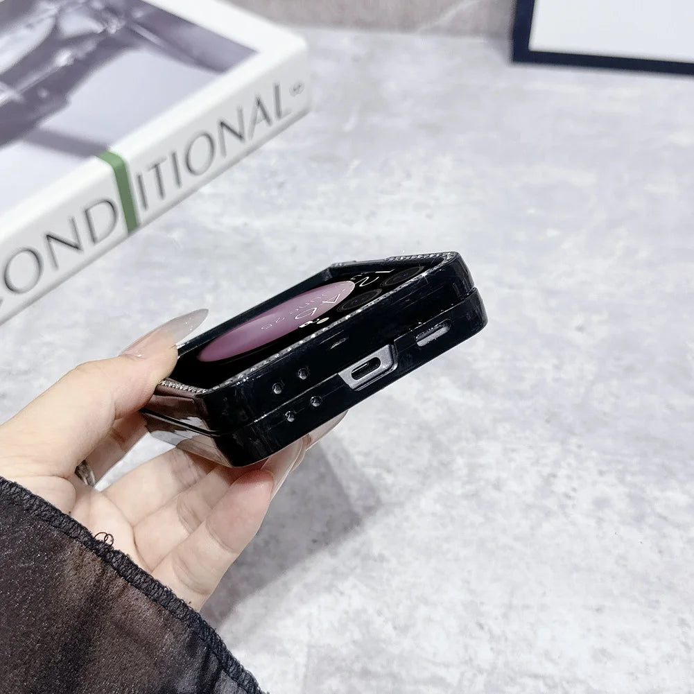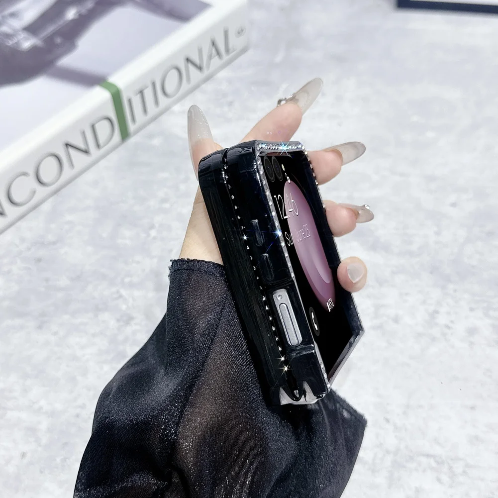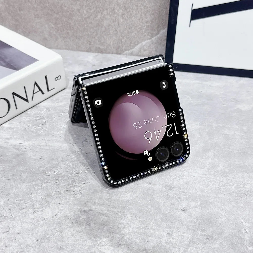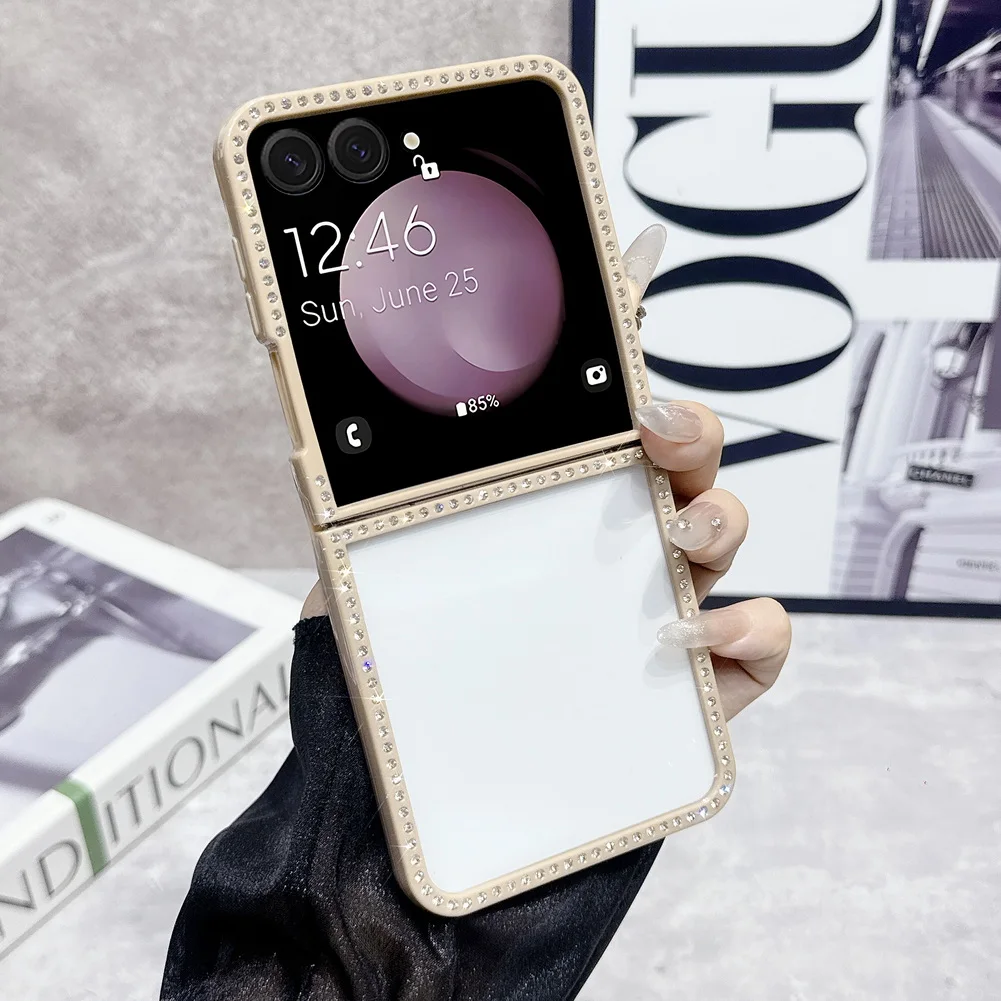Bling Shiny Rhinestone Bordered Transparent Phone Case For Samsung Z Flip 7 fFlip7 FE Galaxy Z Flip 6 5 4 3 Protect Cover