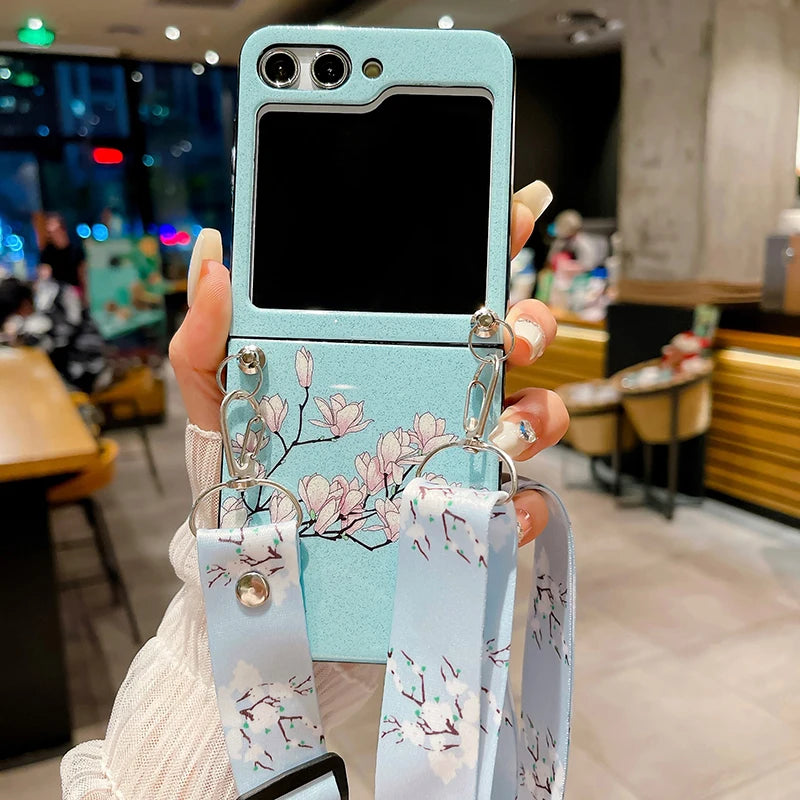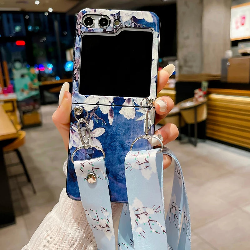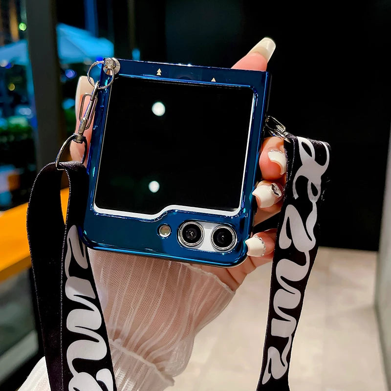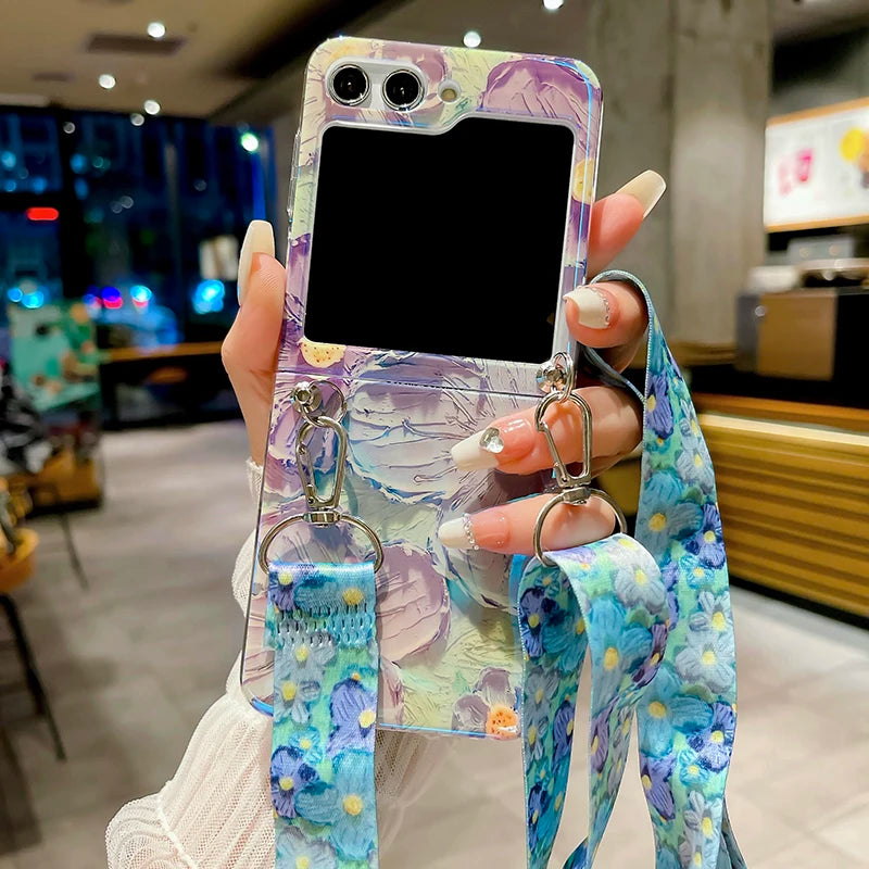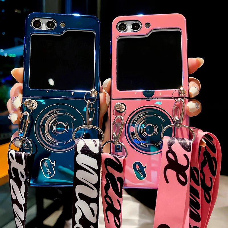 Blu Ray Laser Camera Long Rope Case With Lanyard Necklace Strap Case For Samsung Galaxy Z Flip 5 5G Z Flip6 Hard PC Phone Cover