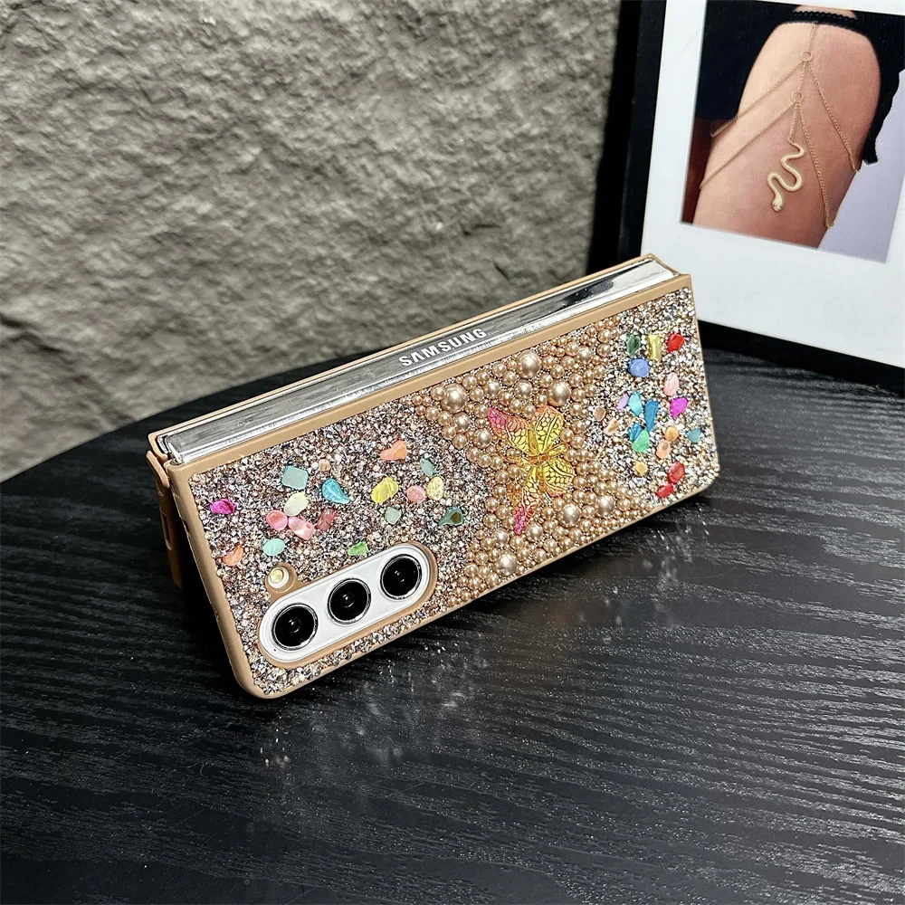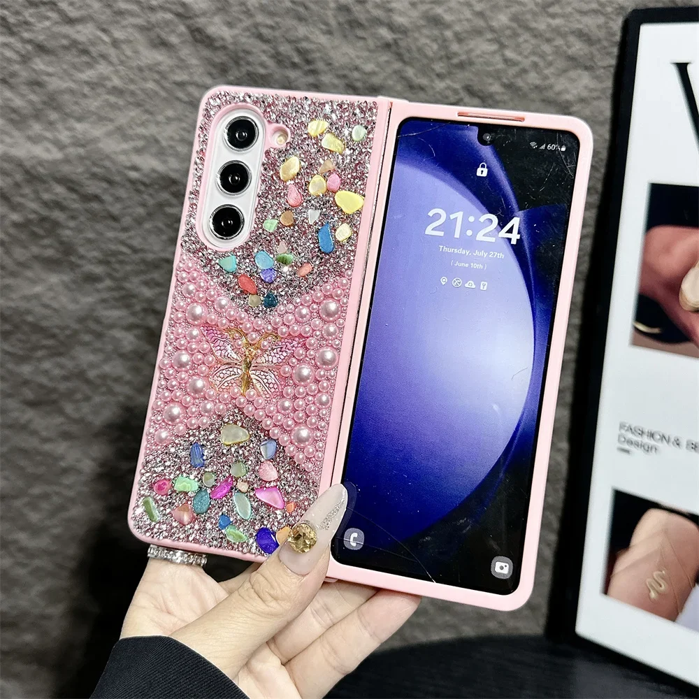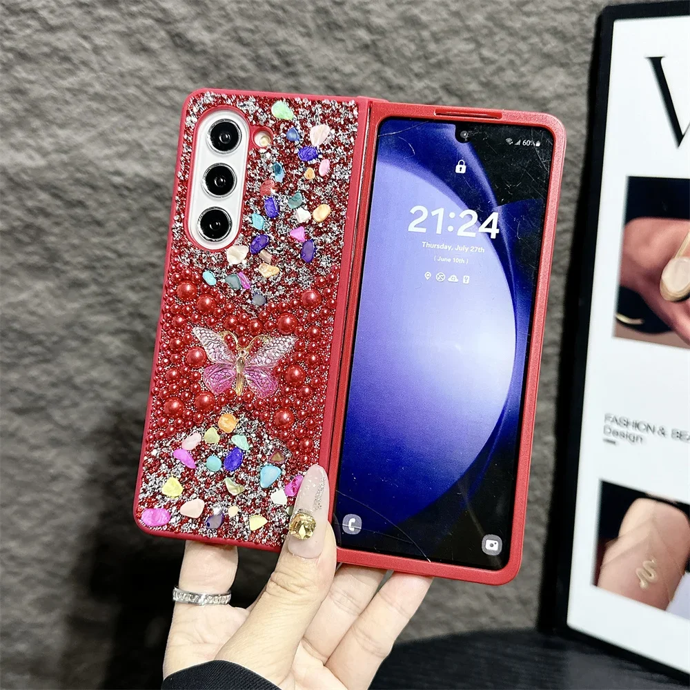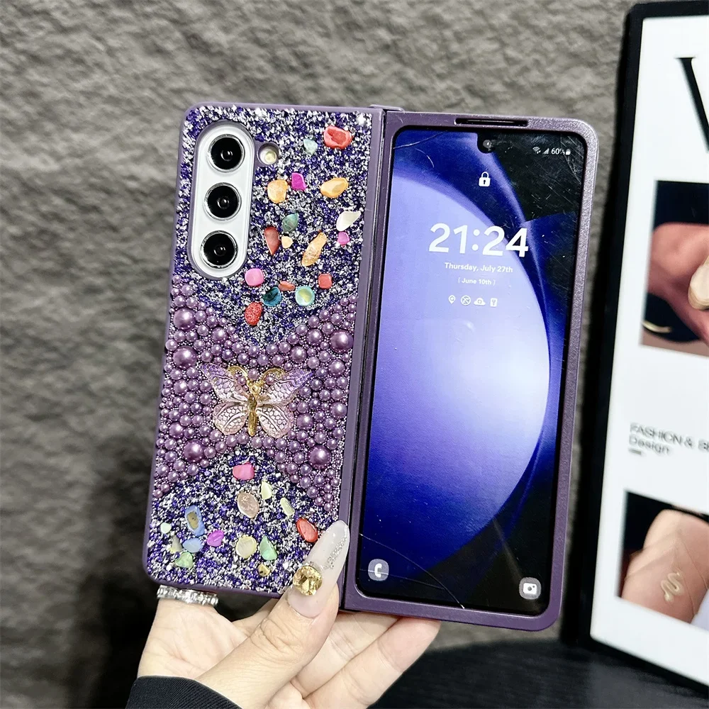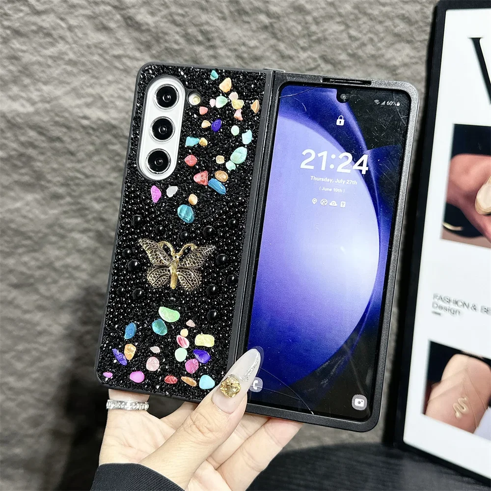 Brand New Unique Butterfly Colorful Jewelled Phone Case For Samsung Galaxy Z Fold 7 6 5 4 3 PC Hard Shell Protection Back Cover
