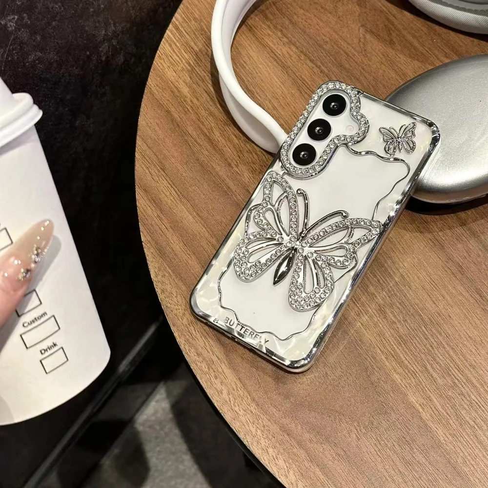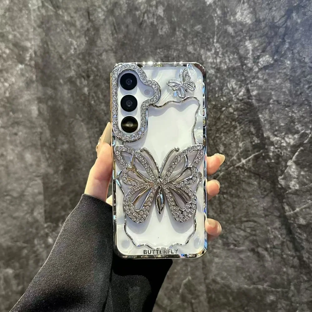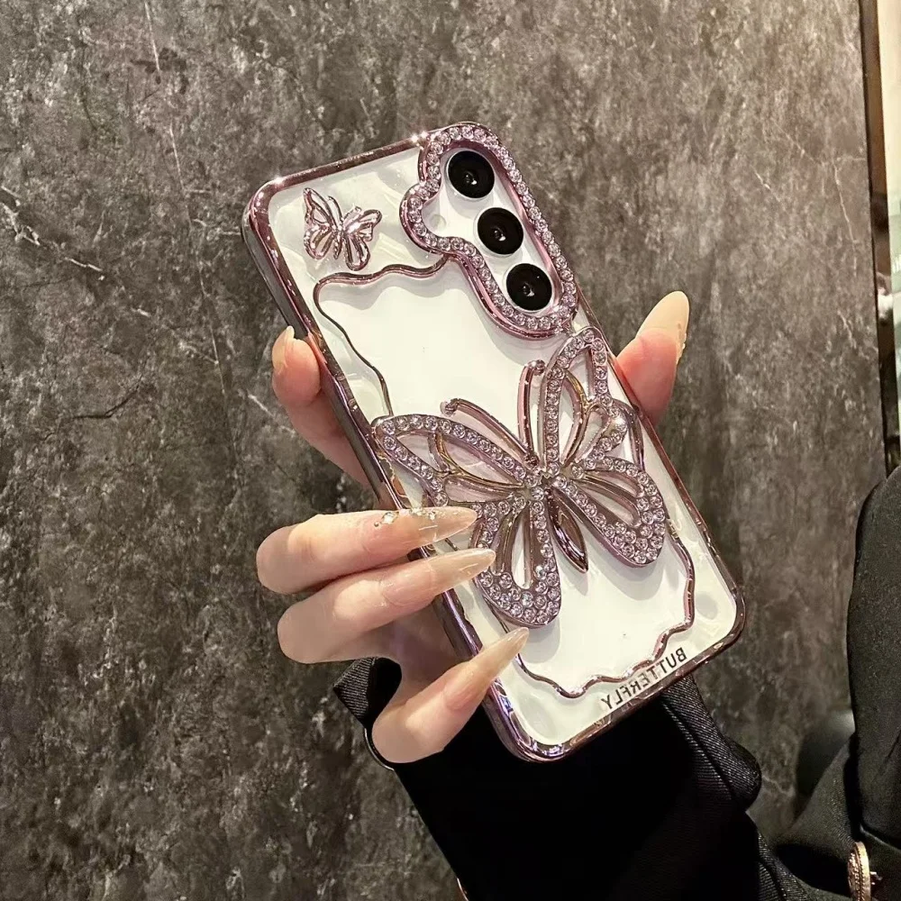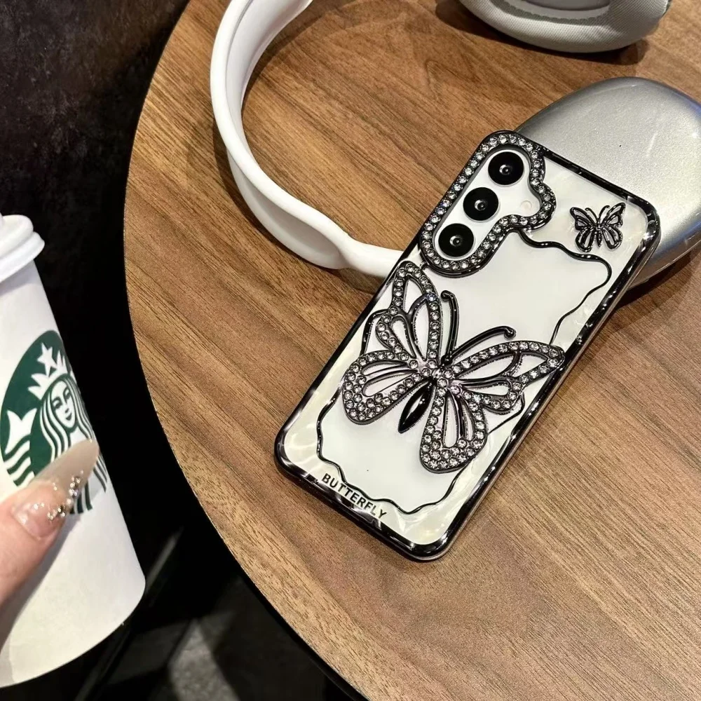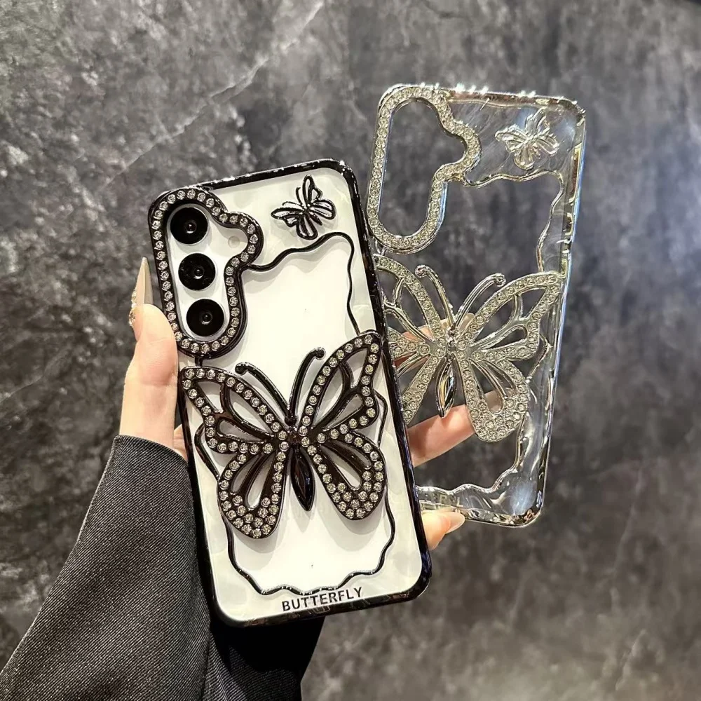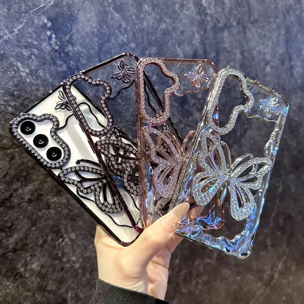 Bright Diamond Butterfly Case For Samsung Galaxy S25 S24 S23 S22 Plus Ultra A16 A26 A36 A56 A07 A17 A06 A55 A05S Clear Cover