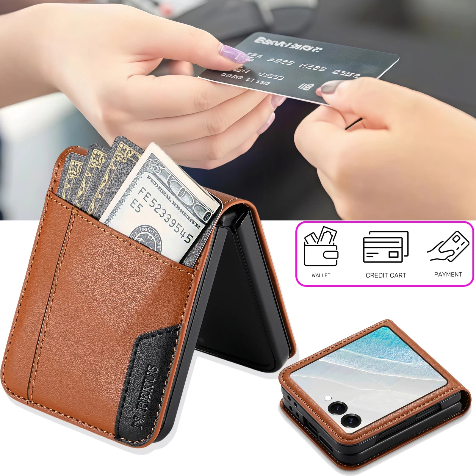 Business Leather Wallet Card Solt Case For Samsung Galaxy Z Flip 7 7fe 5G Flip 6 ZFlip 5 4 3 Flip7 Flip6 Magnetic Bag Skin Cover