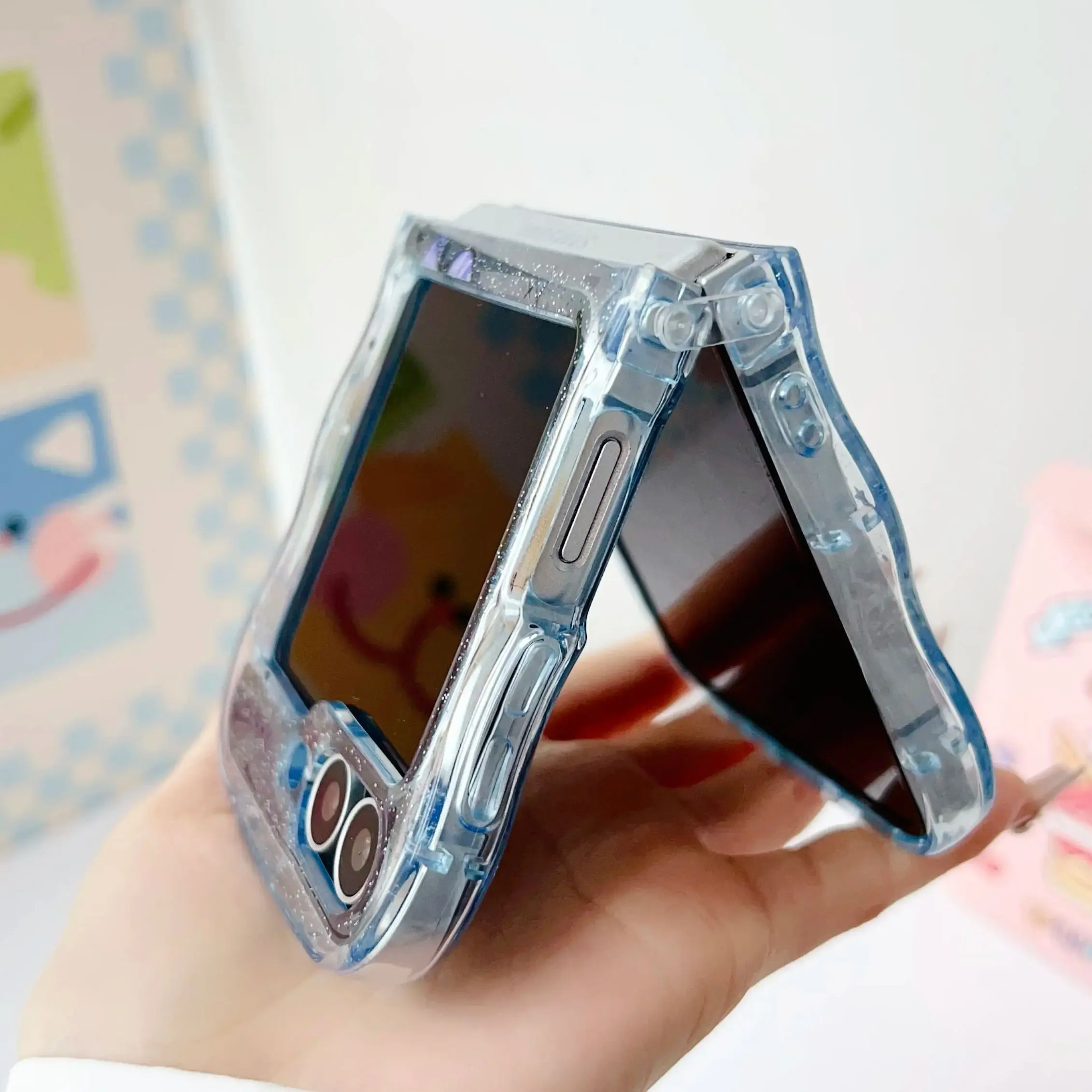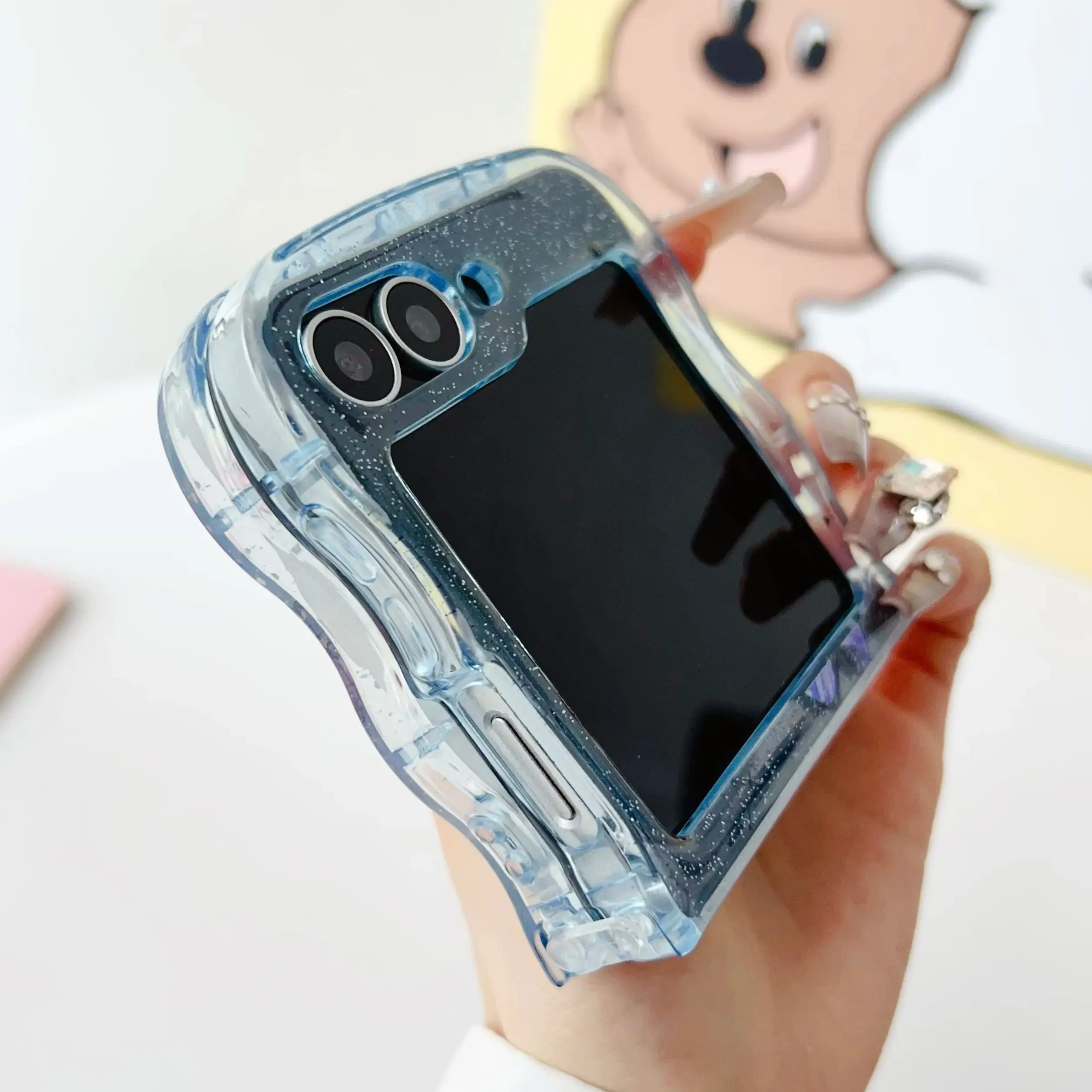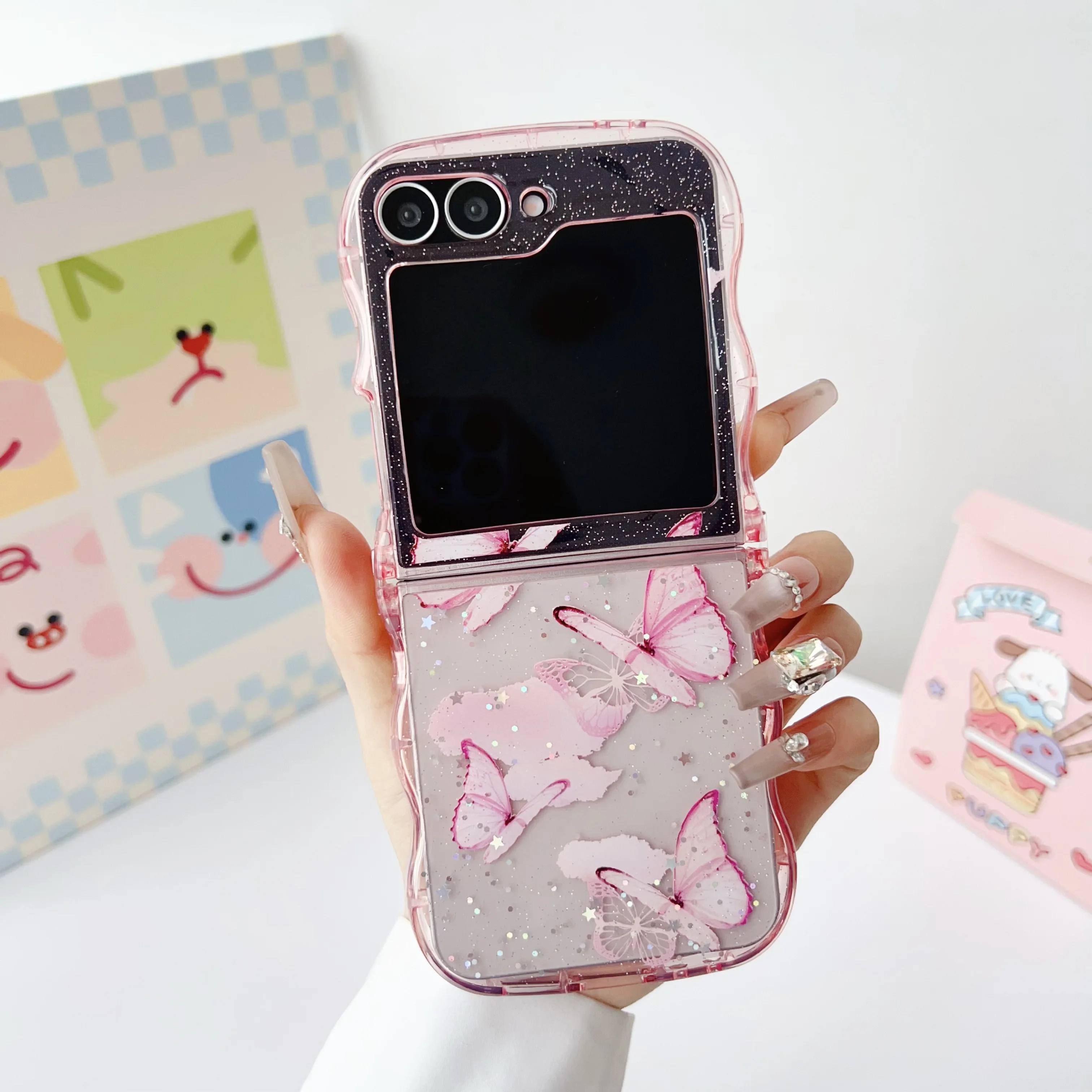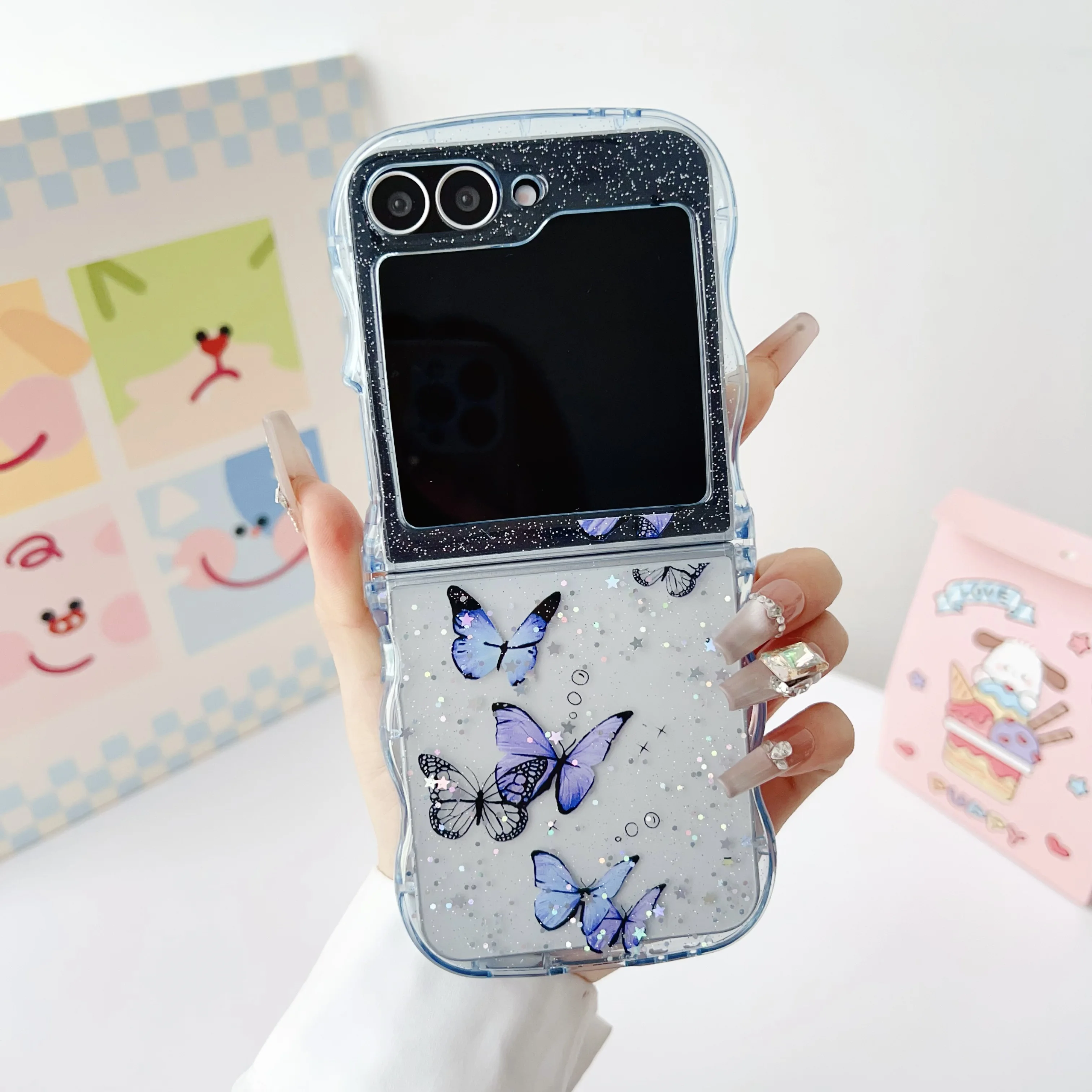 Butterfly Glitter Transparent Wavy Edge Silicone Case For Samsung Galaxy Z Flip 6 5 4 3 Sparkling Sequins Shockproof Phone Cover
