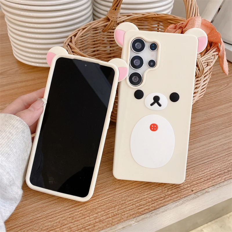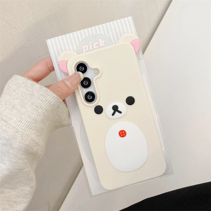 Cartoon Cute 3D Pink Ears Big Mouth Bear Silicone Soft Case for Samsung Galaxy S25 Ultra S24 Plus S25Ultra S25+ S 25 Back Cover