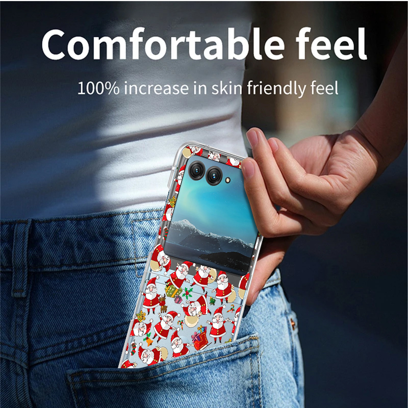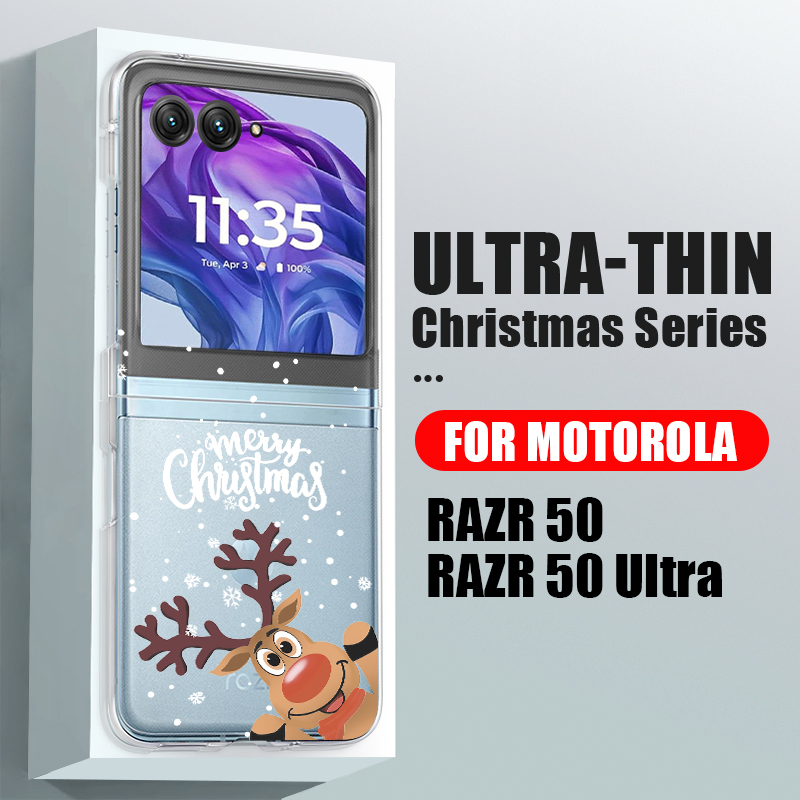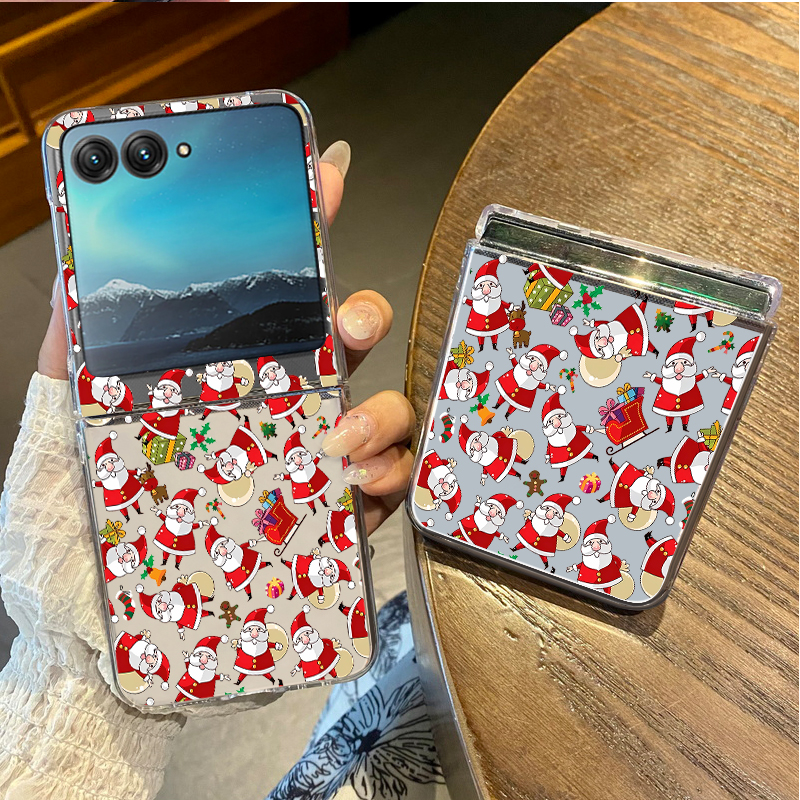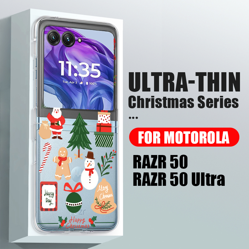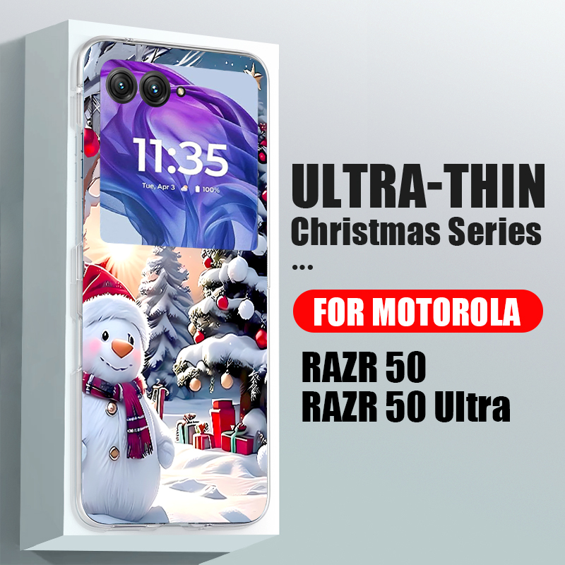 Christmas Phone Case For Motorola Razr 50 40 Ultra Razr 40 Ultra 50 40 Clear Hard PC Folding Shockproof Snowman Patterned Cover