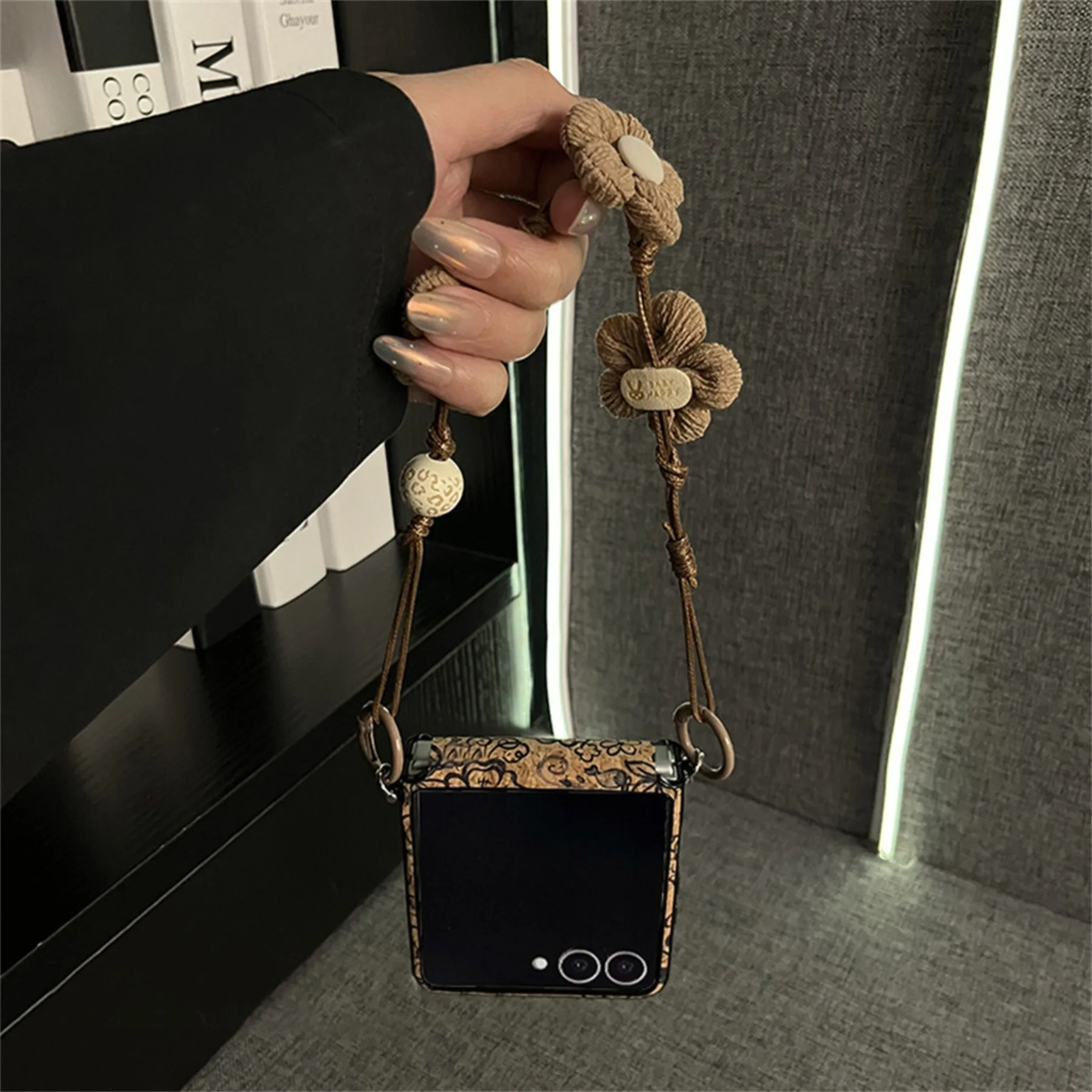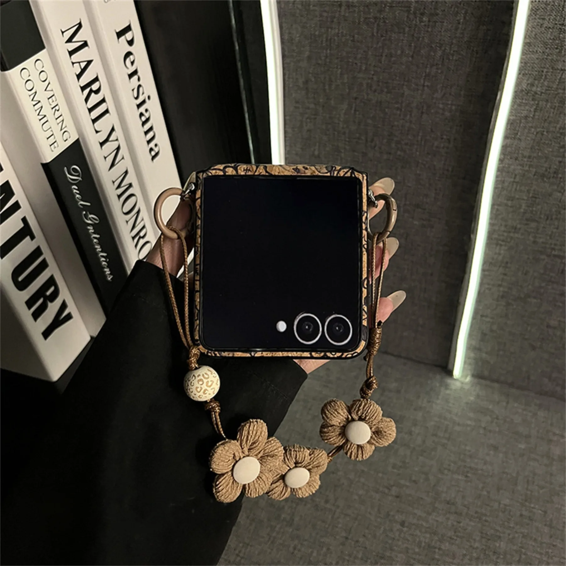 Classic Retro Flowers Case with Flower Bracelet for Samsung Galaxy Zflip7 Zflip6 Xiaomi Mix Flip2 Motorola Razr 60Ultra Cover