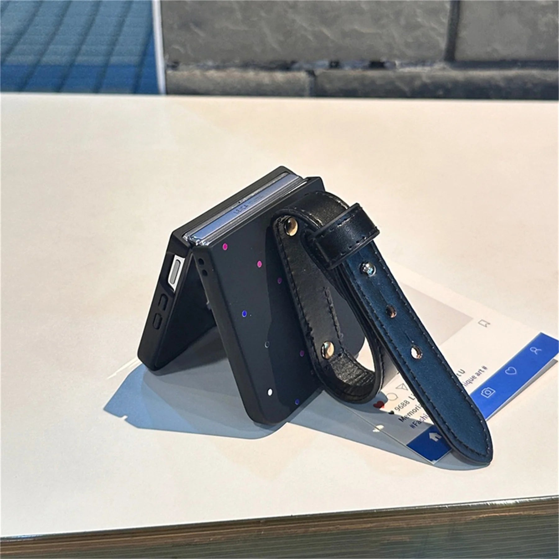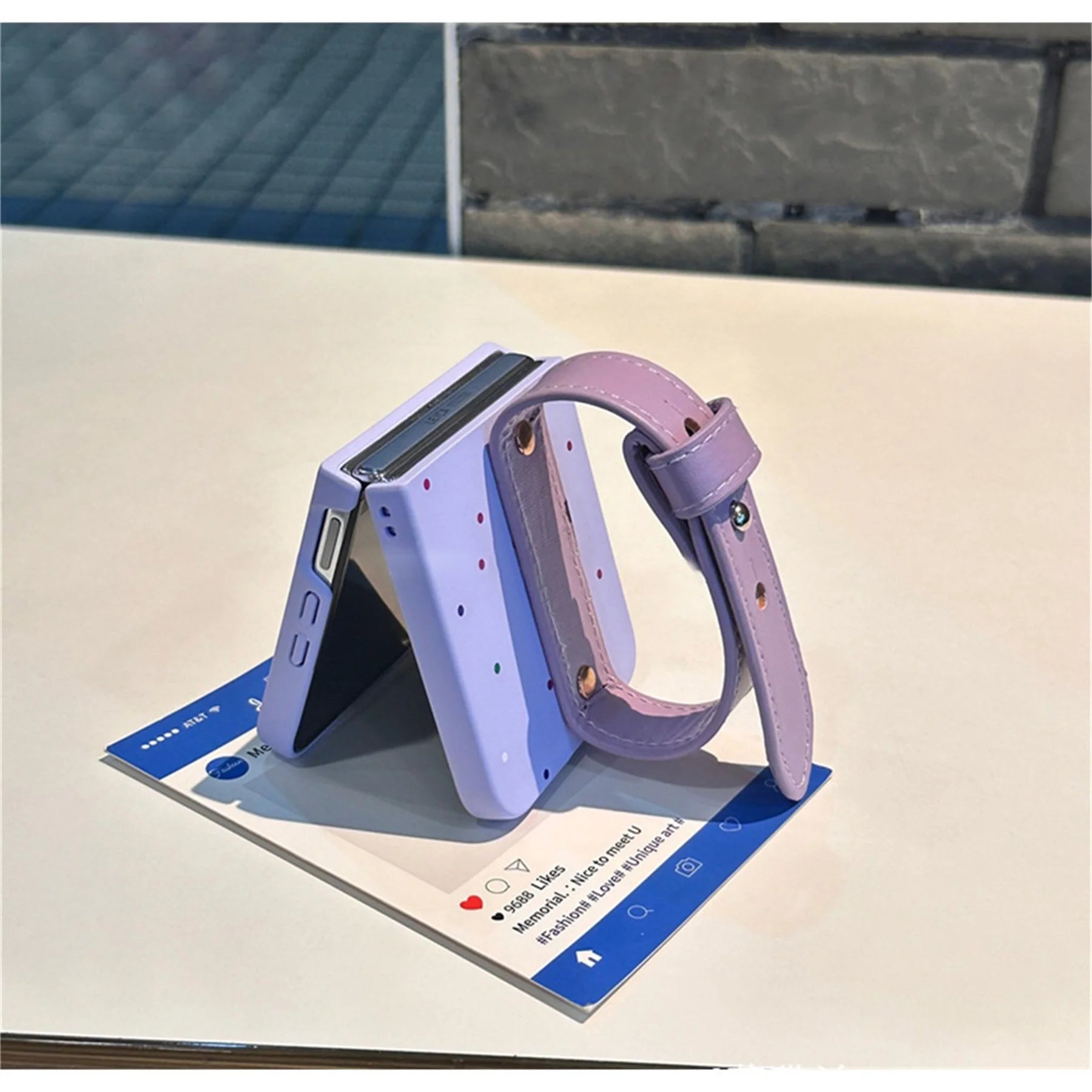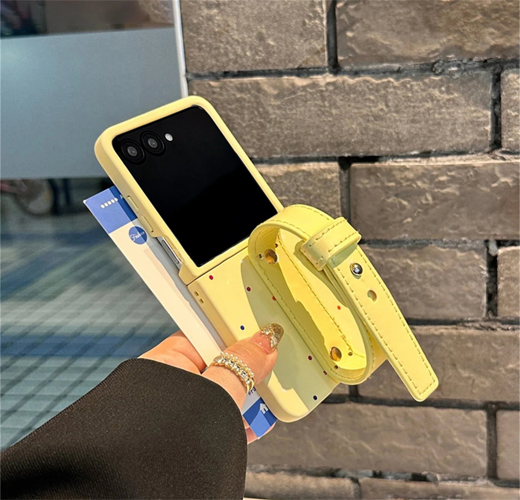 Classic Simple Korean Full Screen Wave Point Case with Adjustable Wrist Strap for Motorola Razr 60 Ultra Razr 50 Ultra Cover