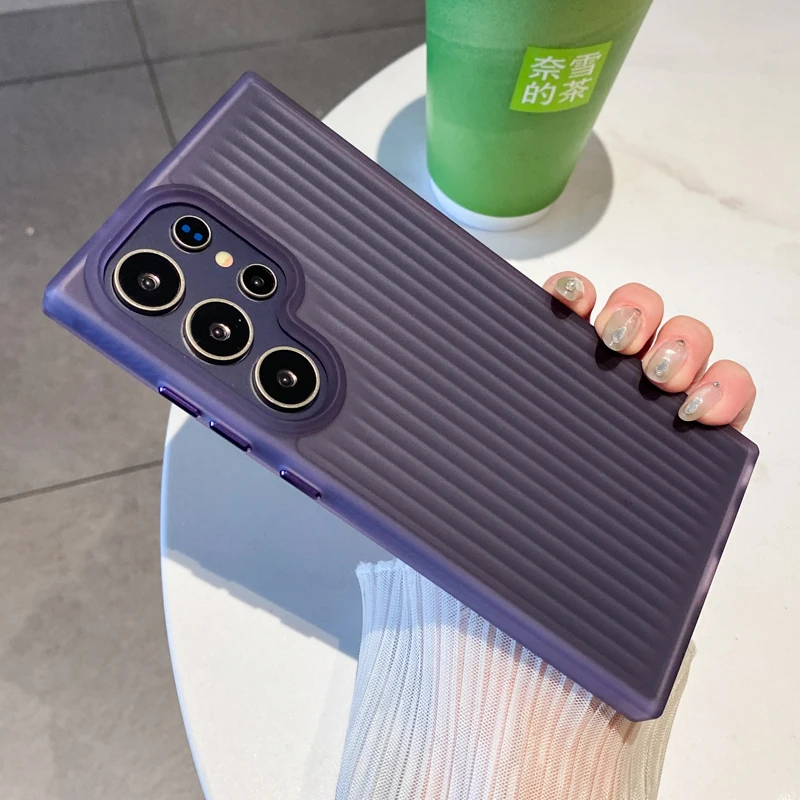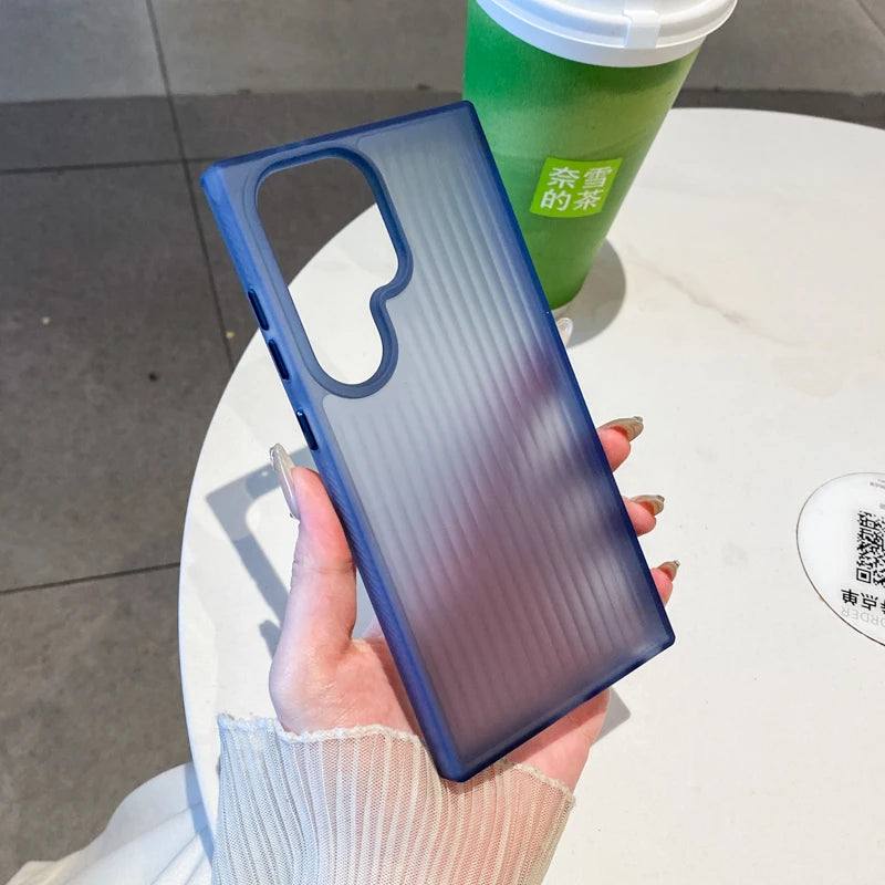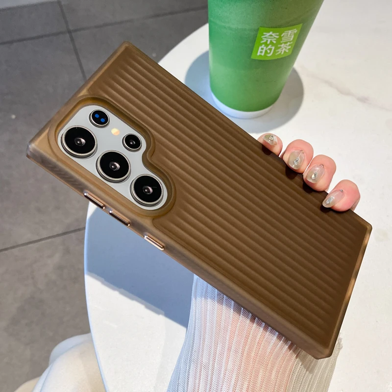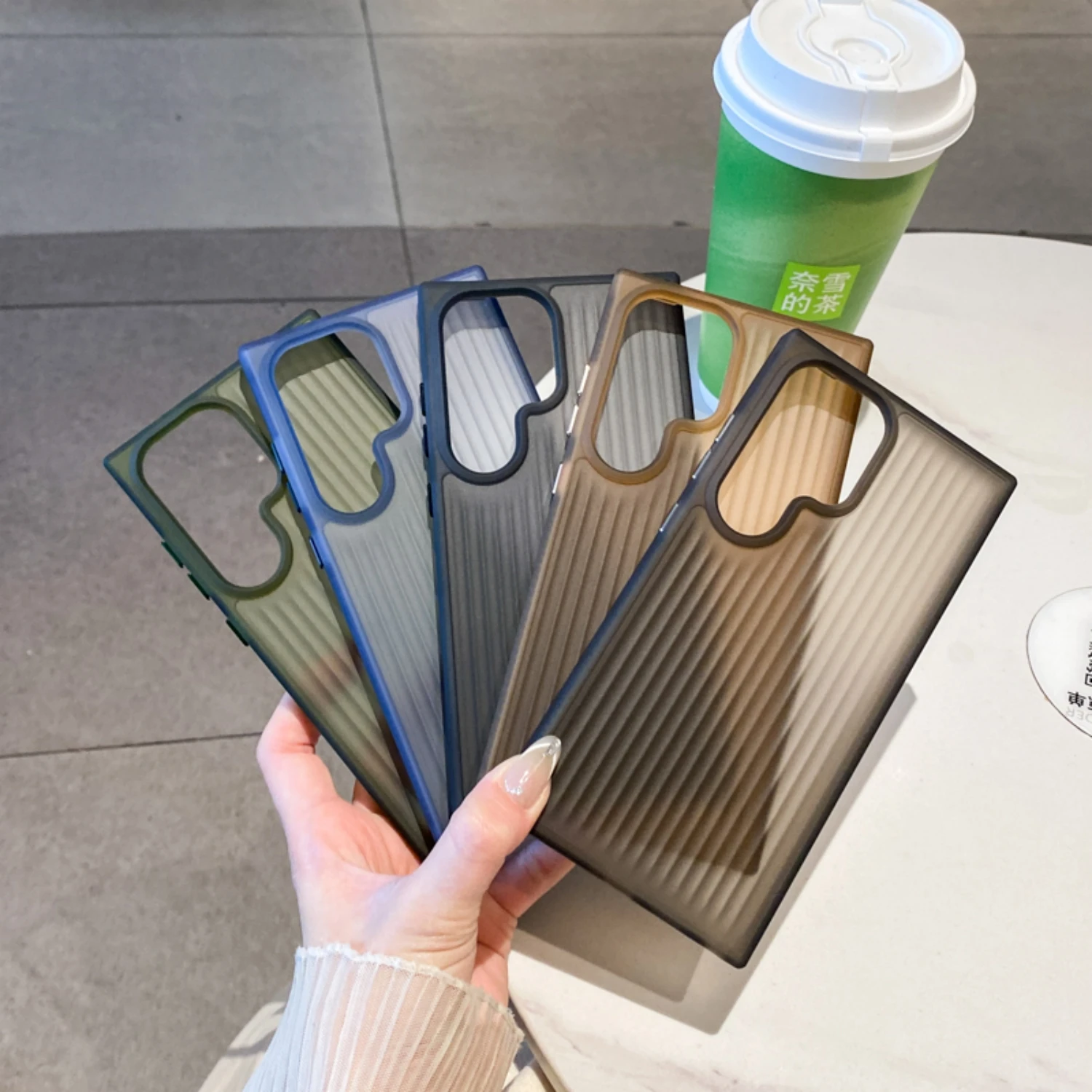 Corrugated Stripes Pattern Matte PC Case For Samsung Galaxy S25 S24 S23 S22 S21 Ultra Plus Translucent Shockproof Hard Cover