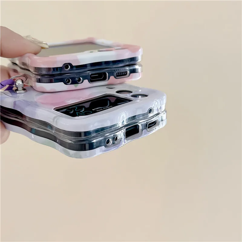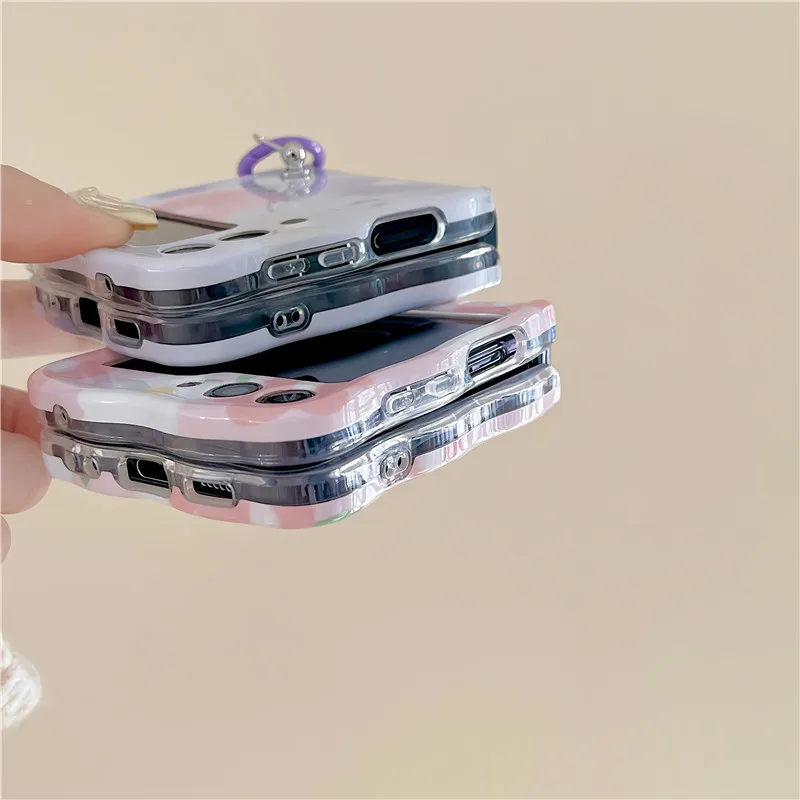 Cute Flower Pendant Phone Case For Samsung Galaxy Z Flip 3 4 5 5G Wave Shockproof Back Cover For Samsung Z Flip3 Flip4 ZFlip5