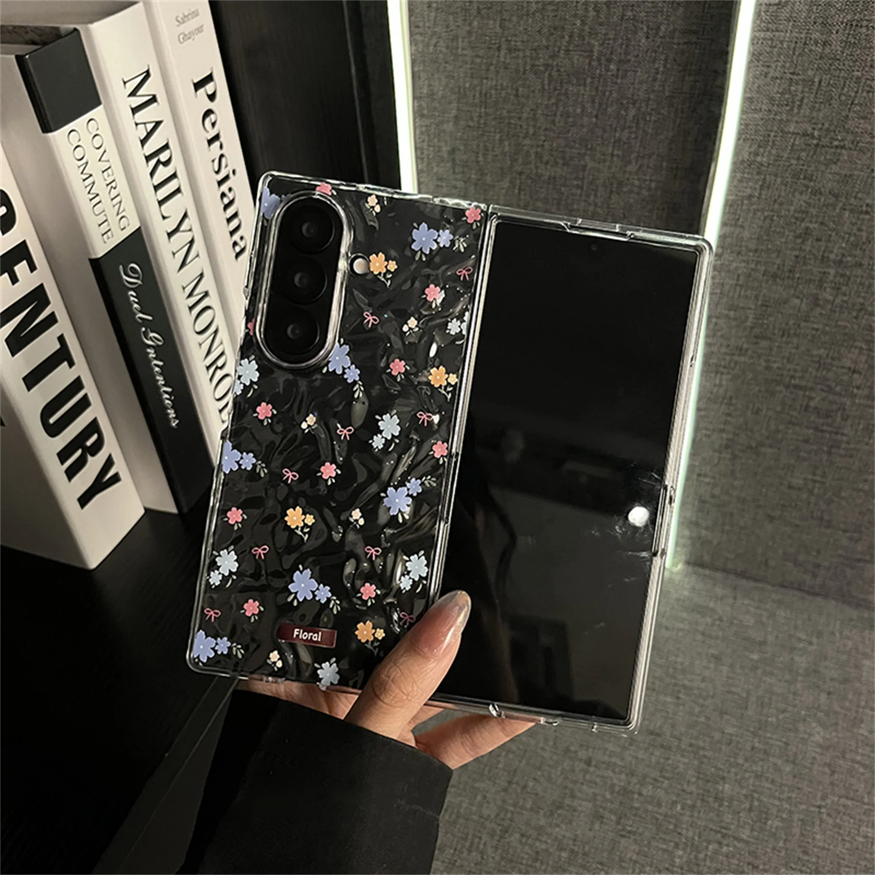 Cute Fresh Transparent Wrinkle Floral Flowers Phone Case for Samsung Galaxy Z Fold 6 Z Fold6 Fold7 Shockproof Back Cover
