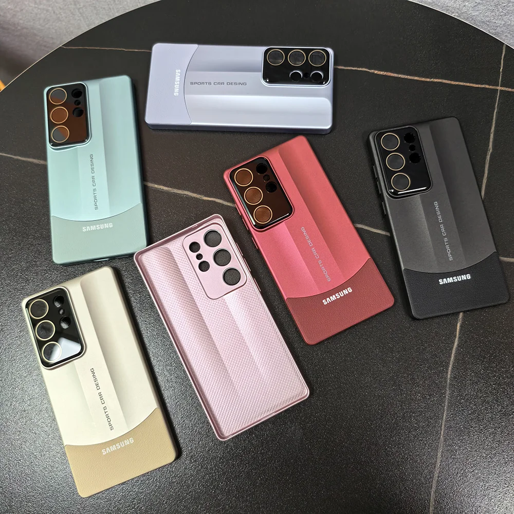 Dual Colors Splicing Case For Samsung Galaxy S23 S24 S25 Ultra Plus Ultra-Thin Hard PC PU Leather Lens Protection Phone Cover
