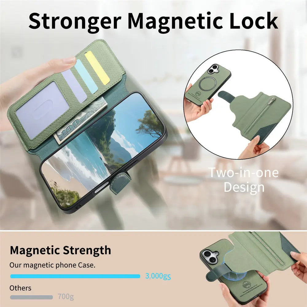 Feature 1: 2 In 1 detachable zipper wallet flip card slot shell