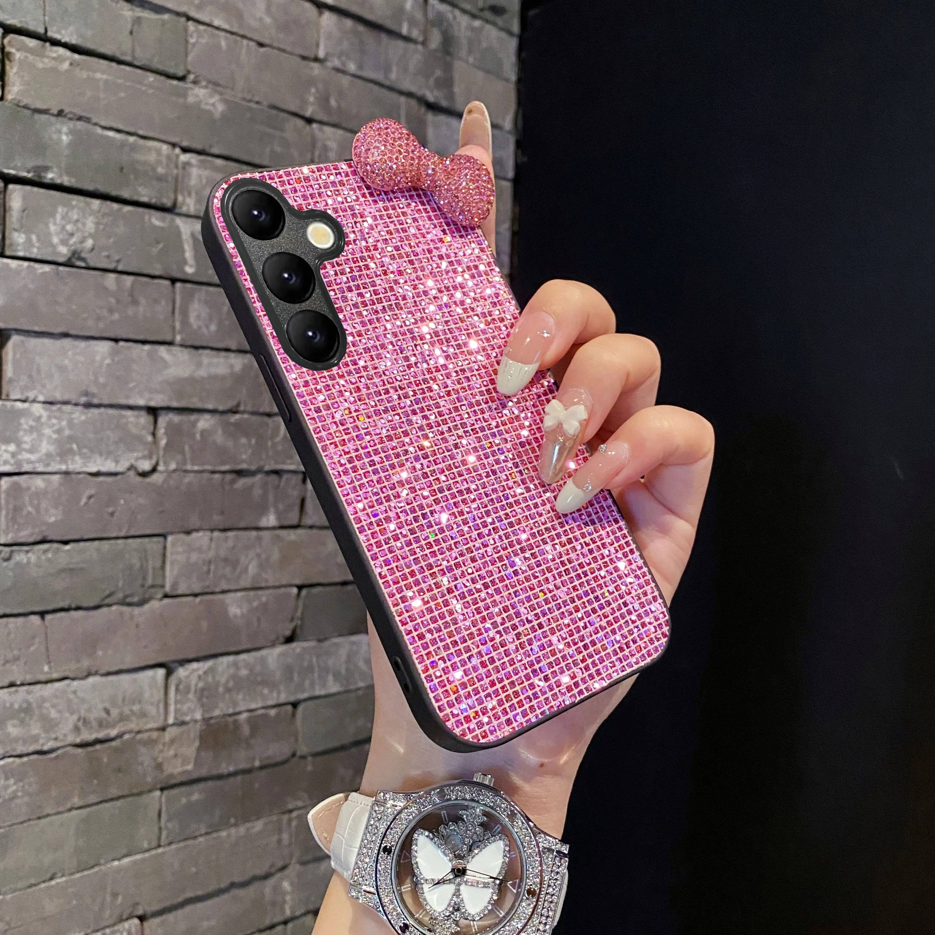 Fashion Cute Drill Pink Butterfly TPU Phone Case For Samsung Galaxy S22 S23 S25 Edge S24 FE Plus Ultra Glitter Protective Case