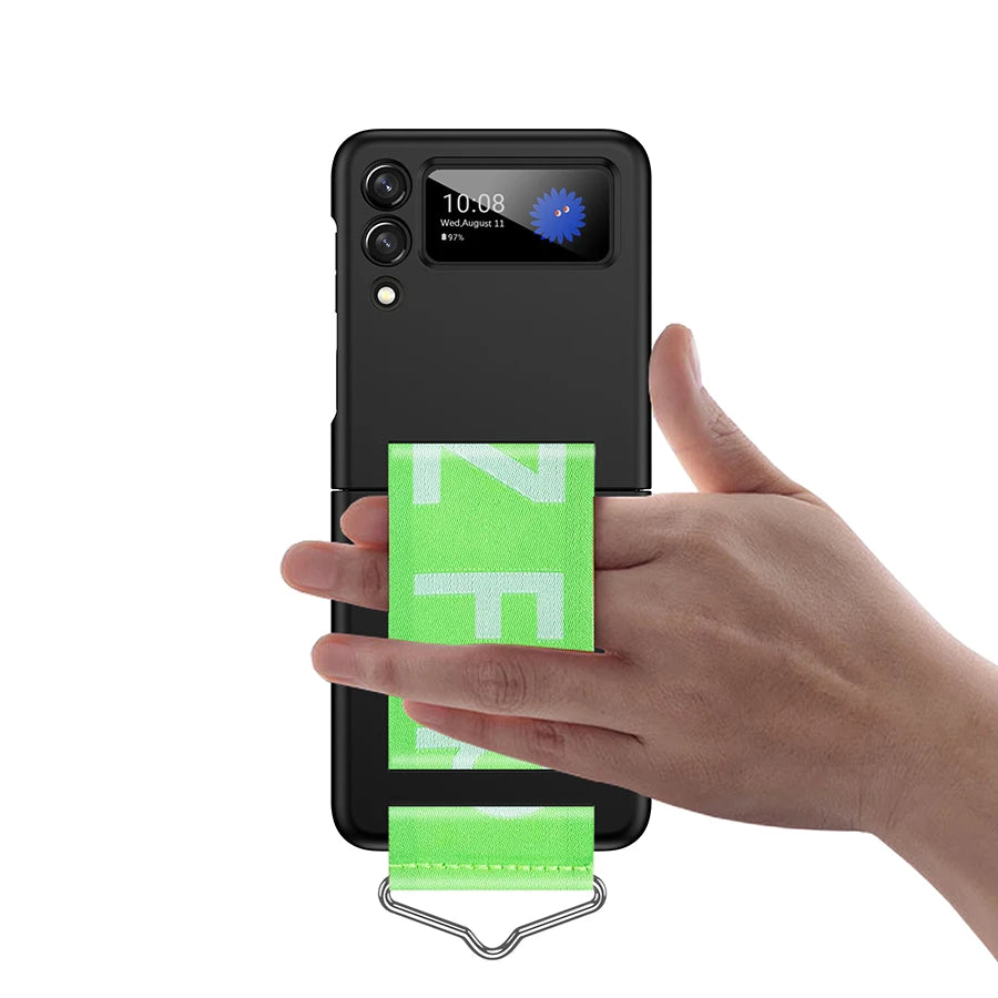 Fashion Hand Strap Phone Case For Samsung Galaxy Z Flip 6 5 4 ZFlip 3 Ultra Thin Hard Plastic Cover Wristband Ring Fundas Coque