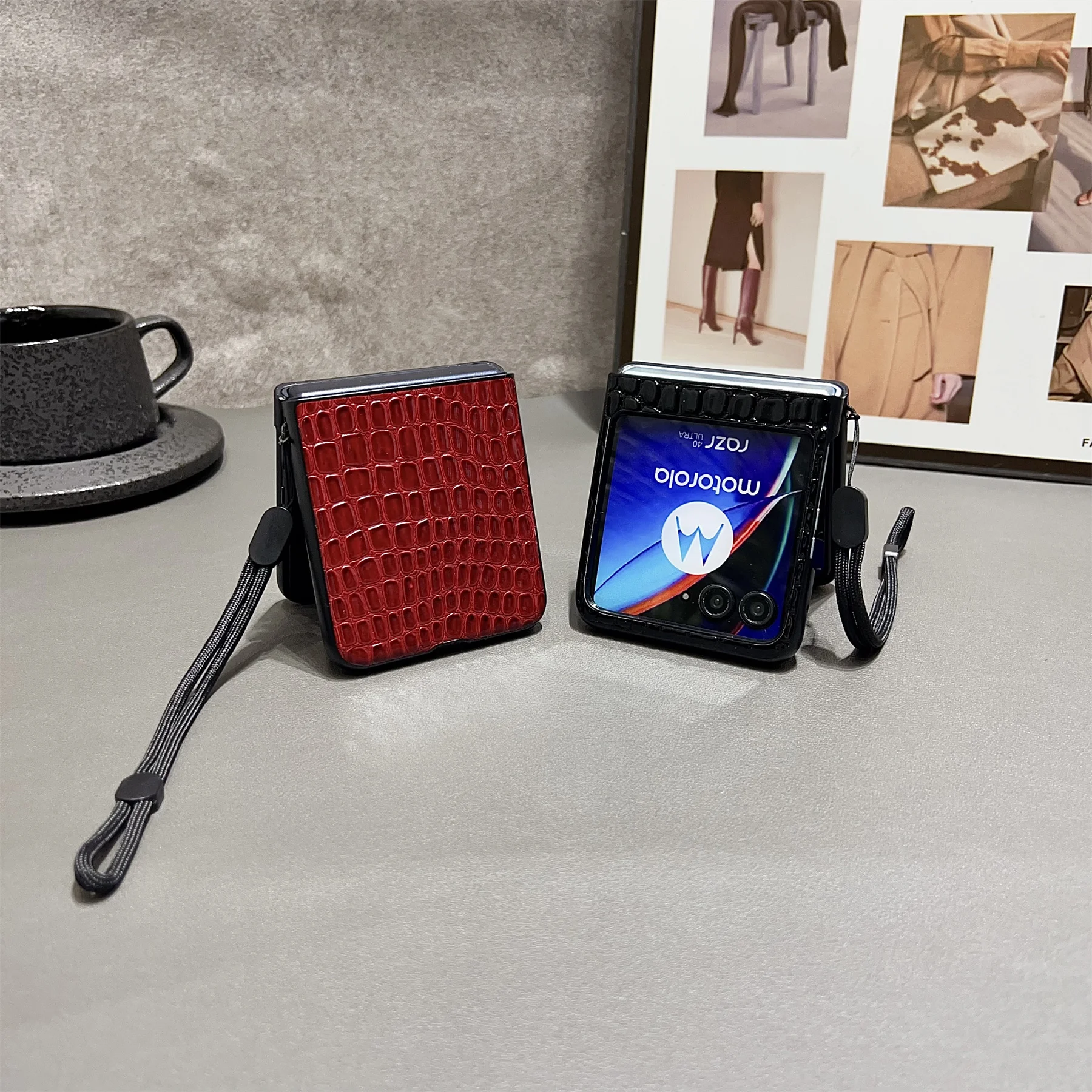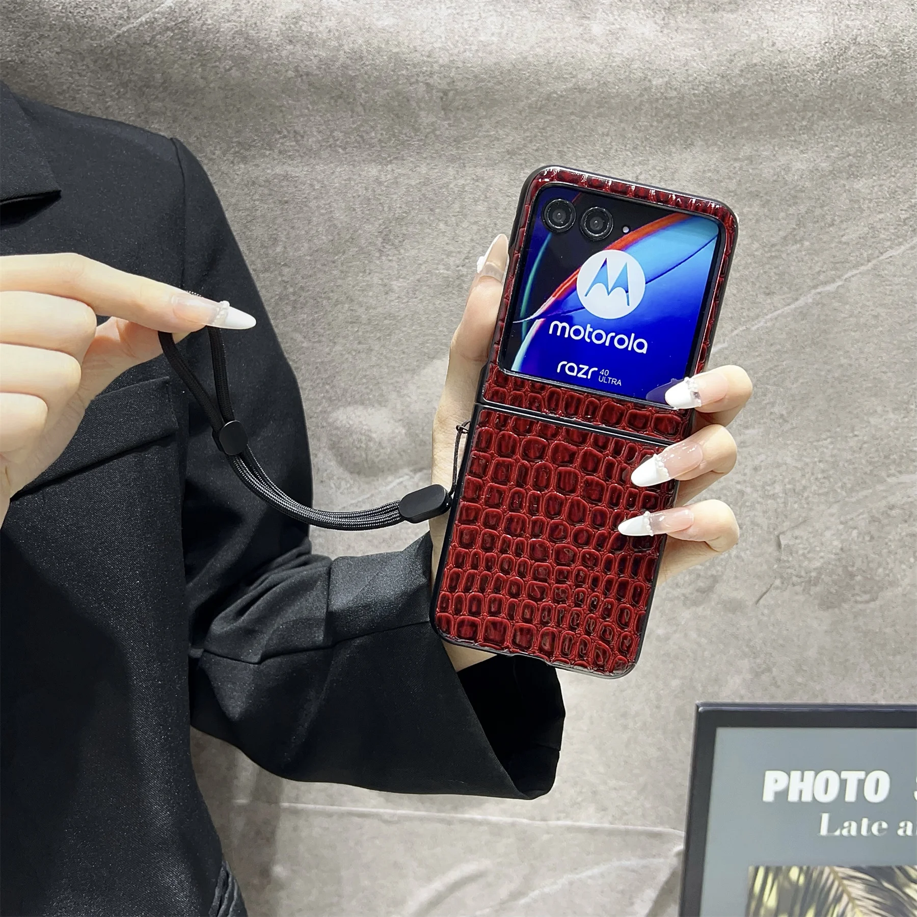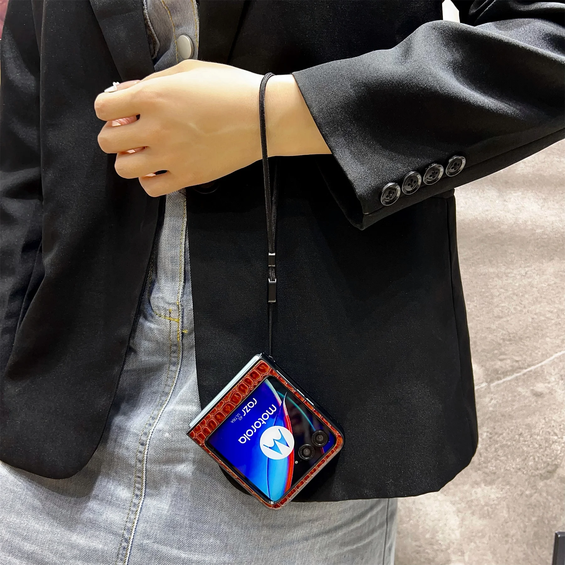 Fashion Korean Luxury Crocodile Pattern Case with Portable Rope for Motorola Razr 60 Pro Razr 60 Razr 50Ultra Razr 40Ultra Cover