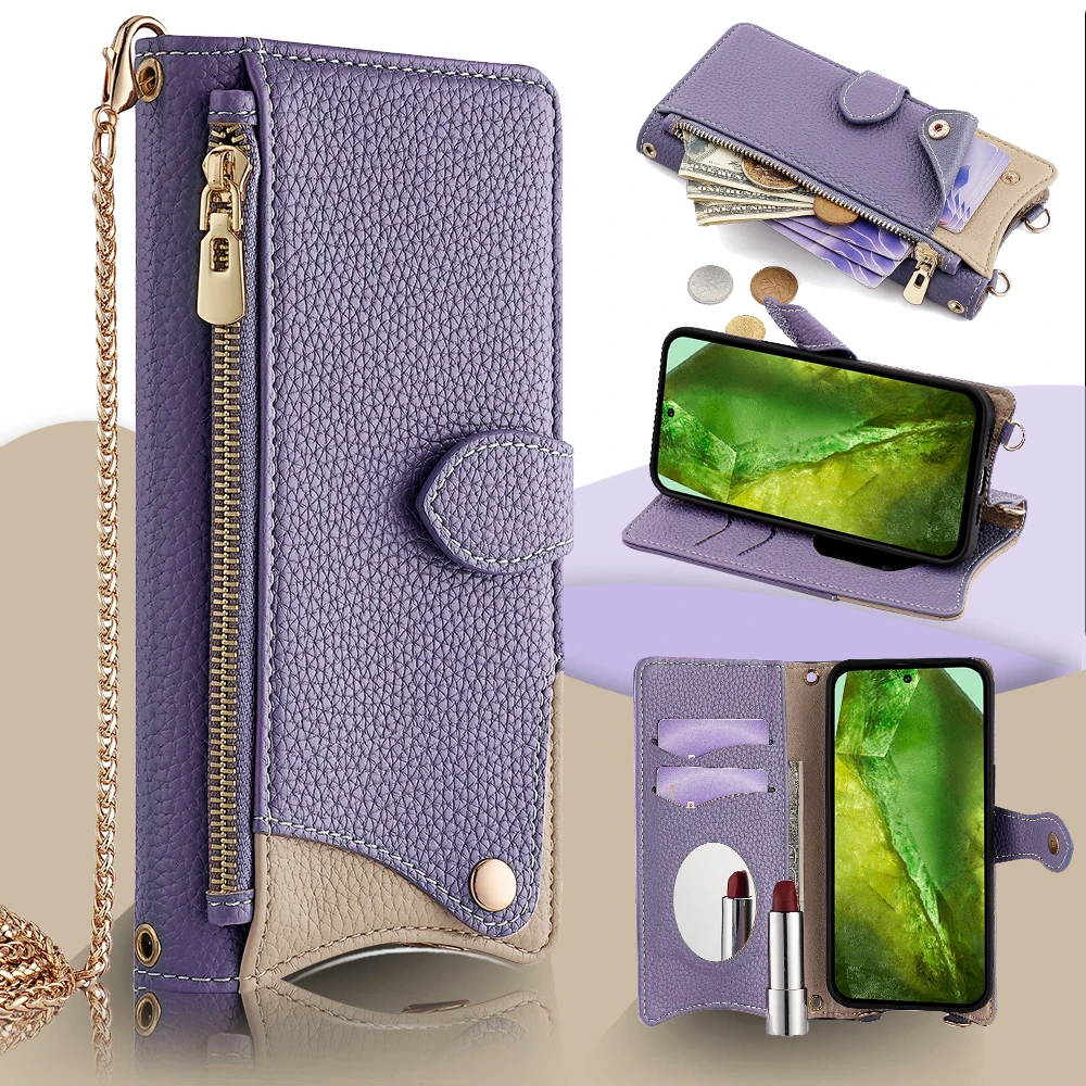 Fashion MultiFunctional Flip Leather Crossbody Case for Google Pixel 9 8 7 6 5 Pro XL 8A 7A 6A 5A pixel9 Zipper Wallet Phone Bag