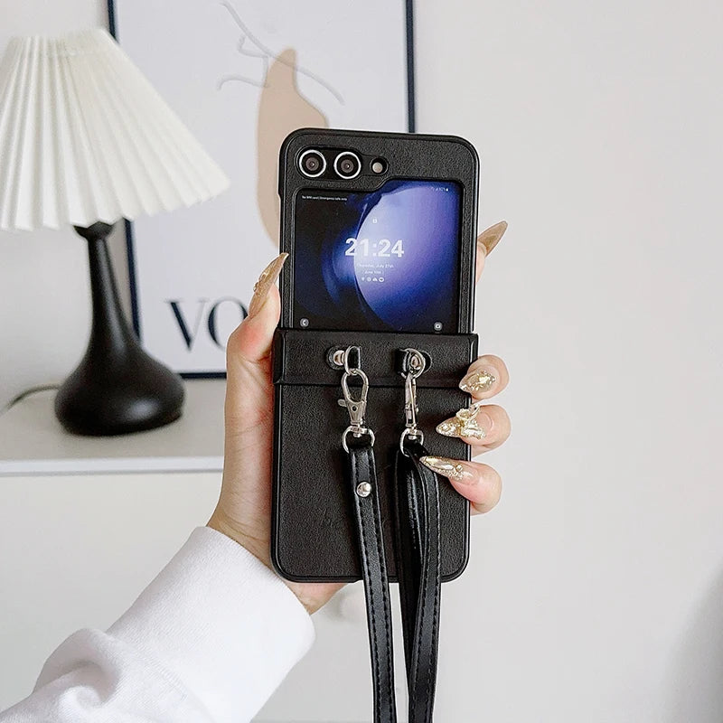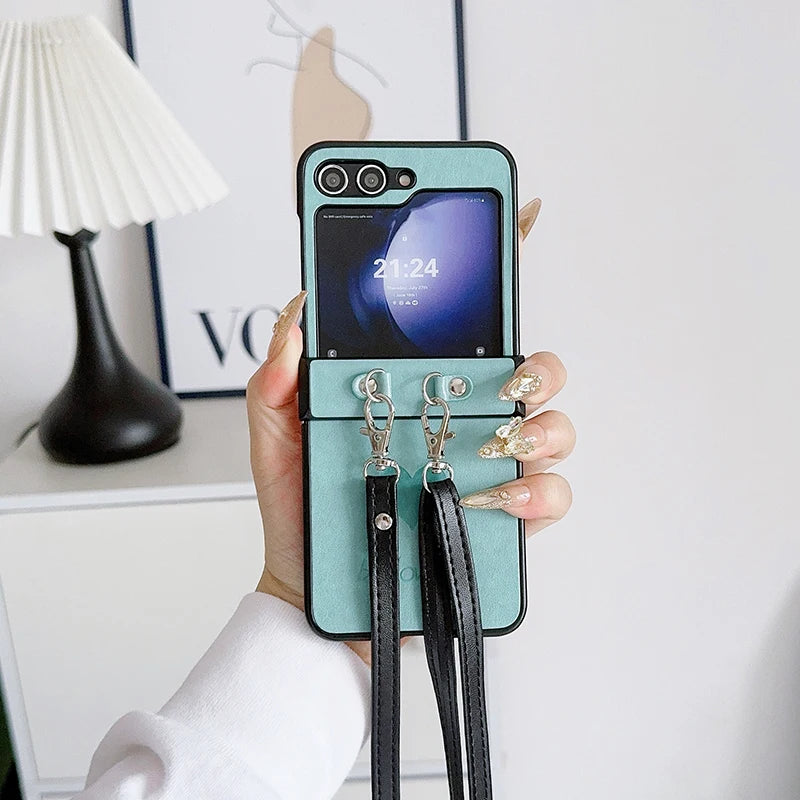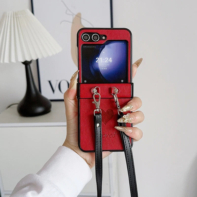 Fashion Simple Love Heart Strap Rope Cord Chain Necklace Lanyard Phone Case For Samsung Galaxy Z Flip 5 4 3 Z Flip6 TPU Cover