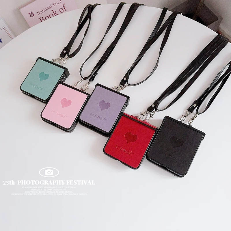 Fashion Simple Love Heart Strap Rope Cord Chain Necklace Lanyard Phone Case For Samsung Galaxy Z Flip 5 4 3 Z Flip5 6 TPU Cover