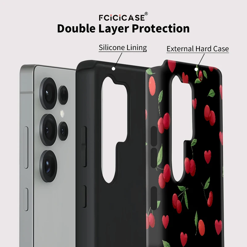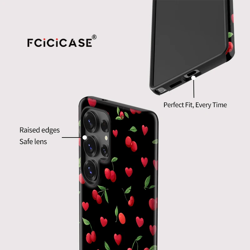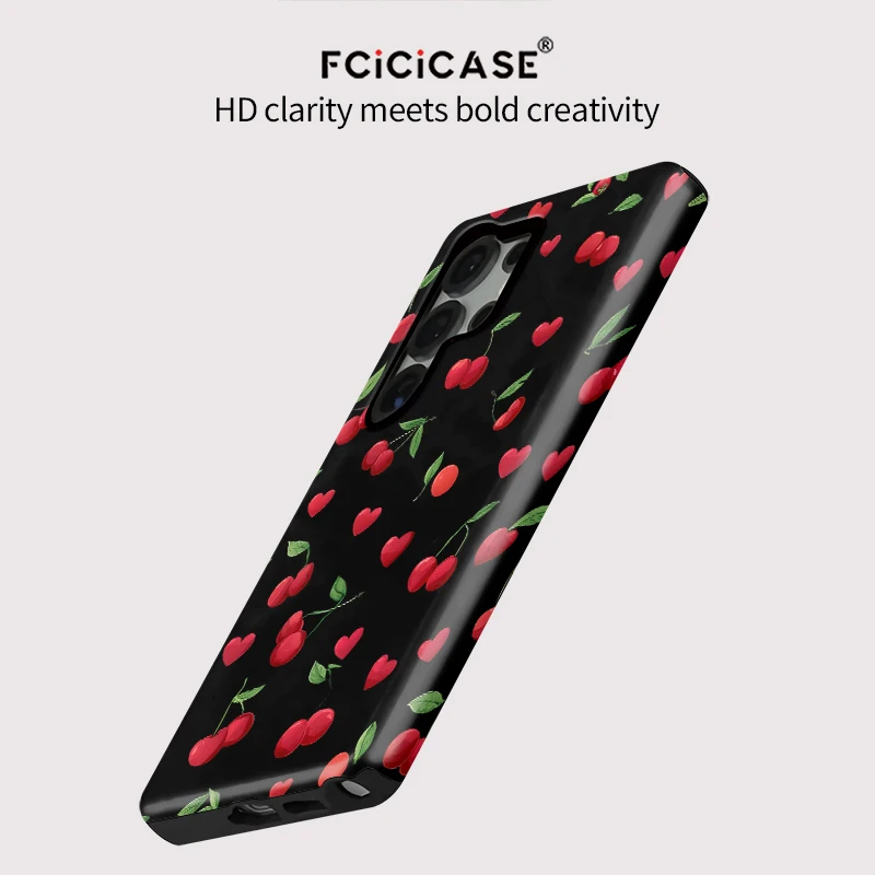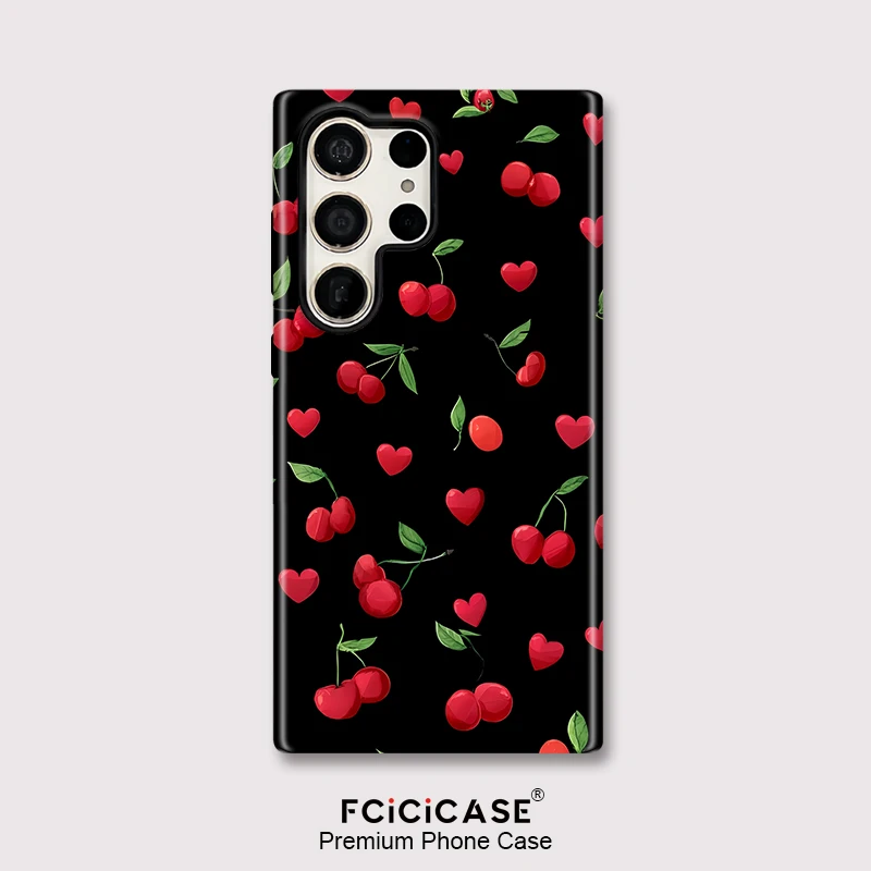 Fcicicase Fashion Acrylic Case For Samsung Galaxy S20 FE S23 Plus S24 Ultra S25 Cherry Love Heart Printing Protective Cover