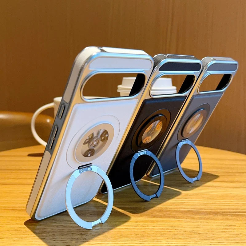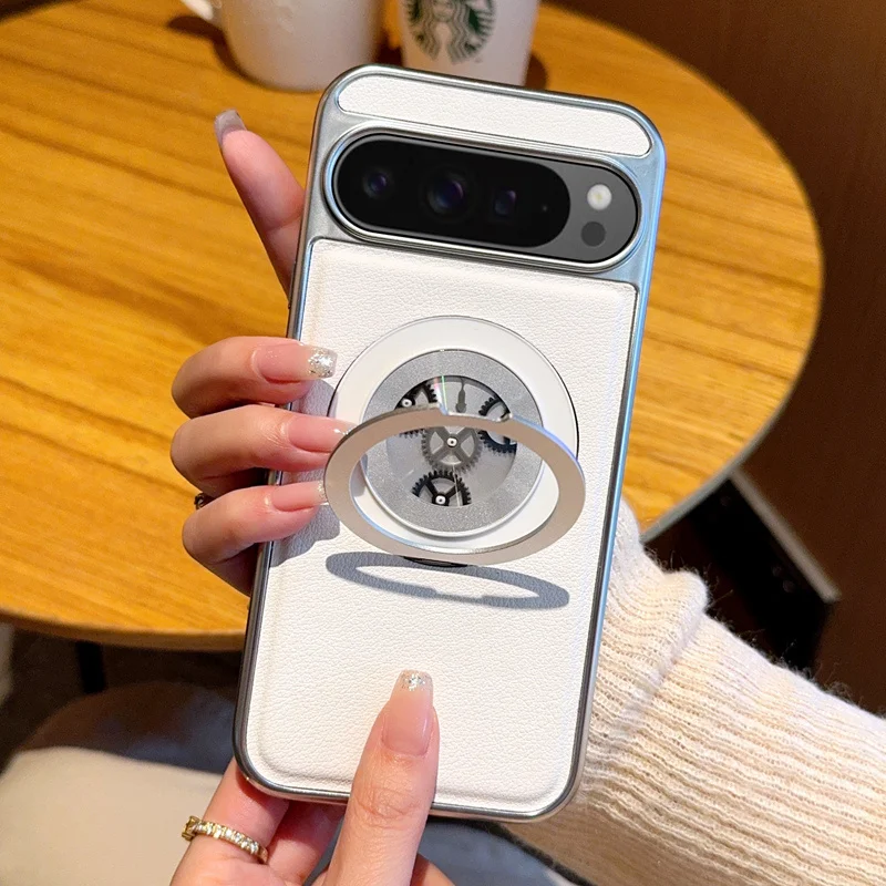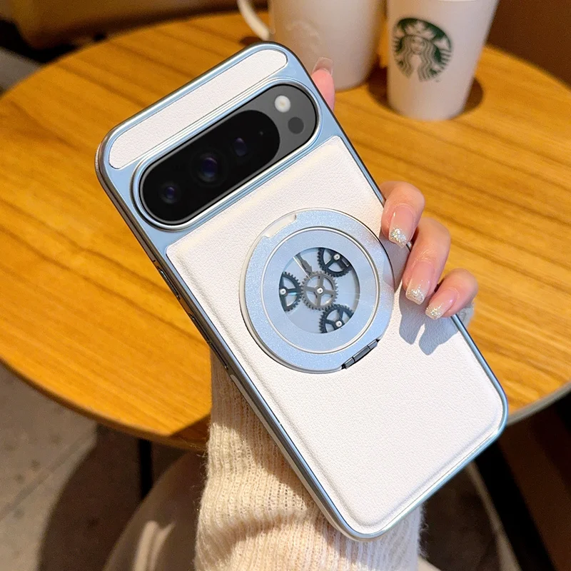 For Google Pixel 8 9 10 Pro XL 9A Magnetic rotatable Kickstand Gear relieve stress Hybrid TPU+PC PU Leather Luxury Back Case