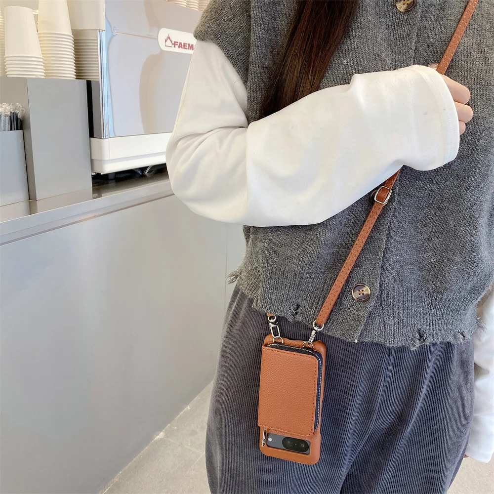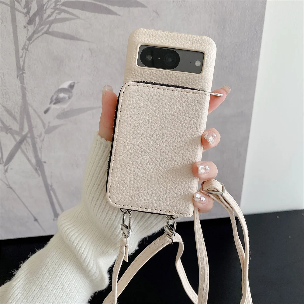 For Google Pixel 9 8 7 6 5 Pro XL 8 A 7A 6A Phone Case Leather Litchi Wallet Card Bag Shoulder Strap Lanyard Stand Holder Cover