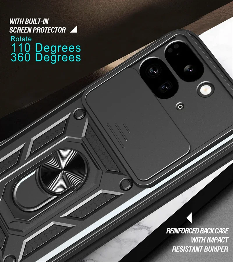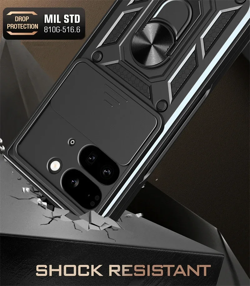 For Google Pixel 9 Pro Fold 5G Phone Case Shockproof Car Magnet Ring Armor Protection Silicone Stand Holder Back Cover Cases