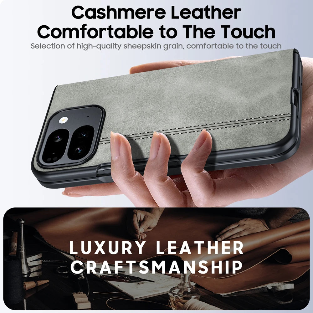 for Google Pixel 9 Pro Fold Phone Case, Sheepskin Texture Magnetic Hinge Protective Case, Integrated Protective Film