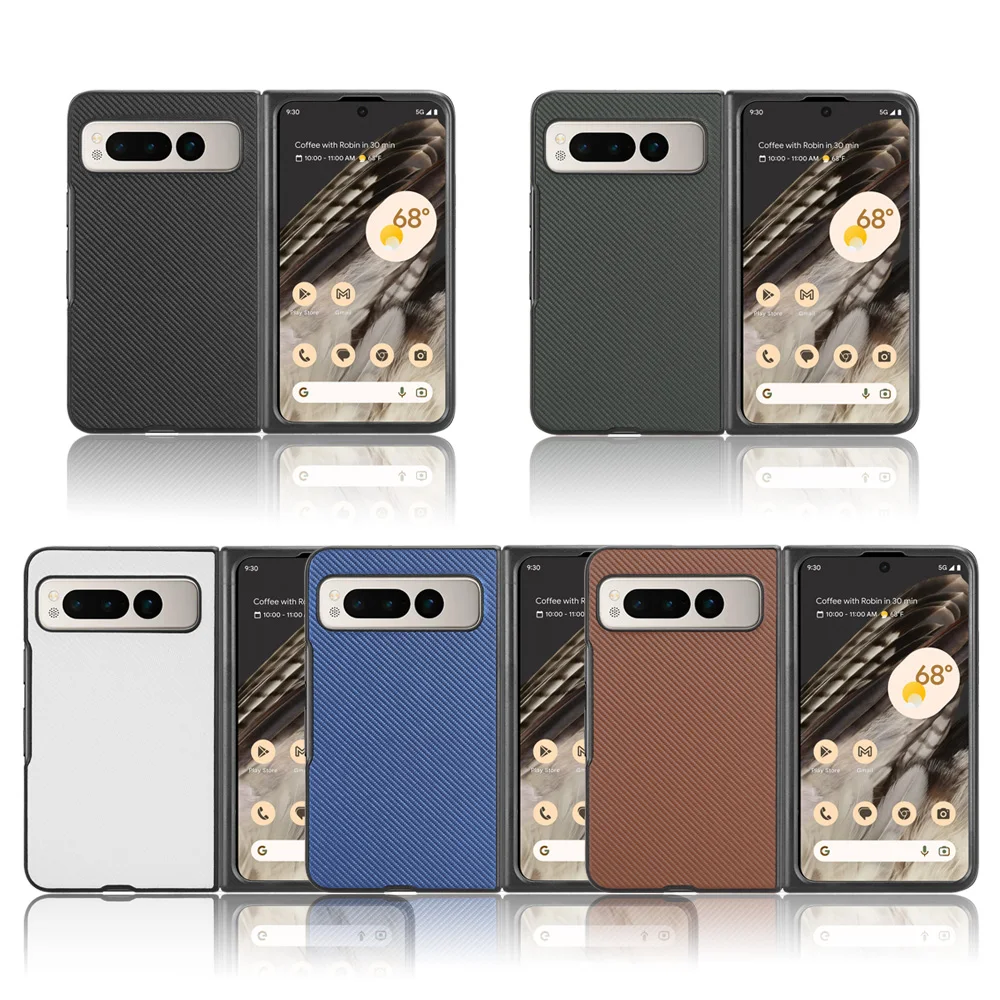 For Google Pixel Fold Fiber Carbon Texture Leather Case Ultra Thin Shockproof Protective Non-Fingerprint Cell Phone Cover
