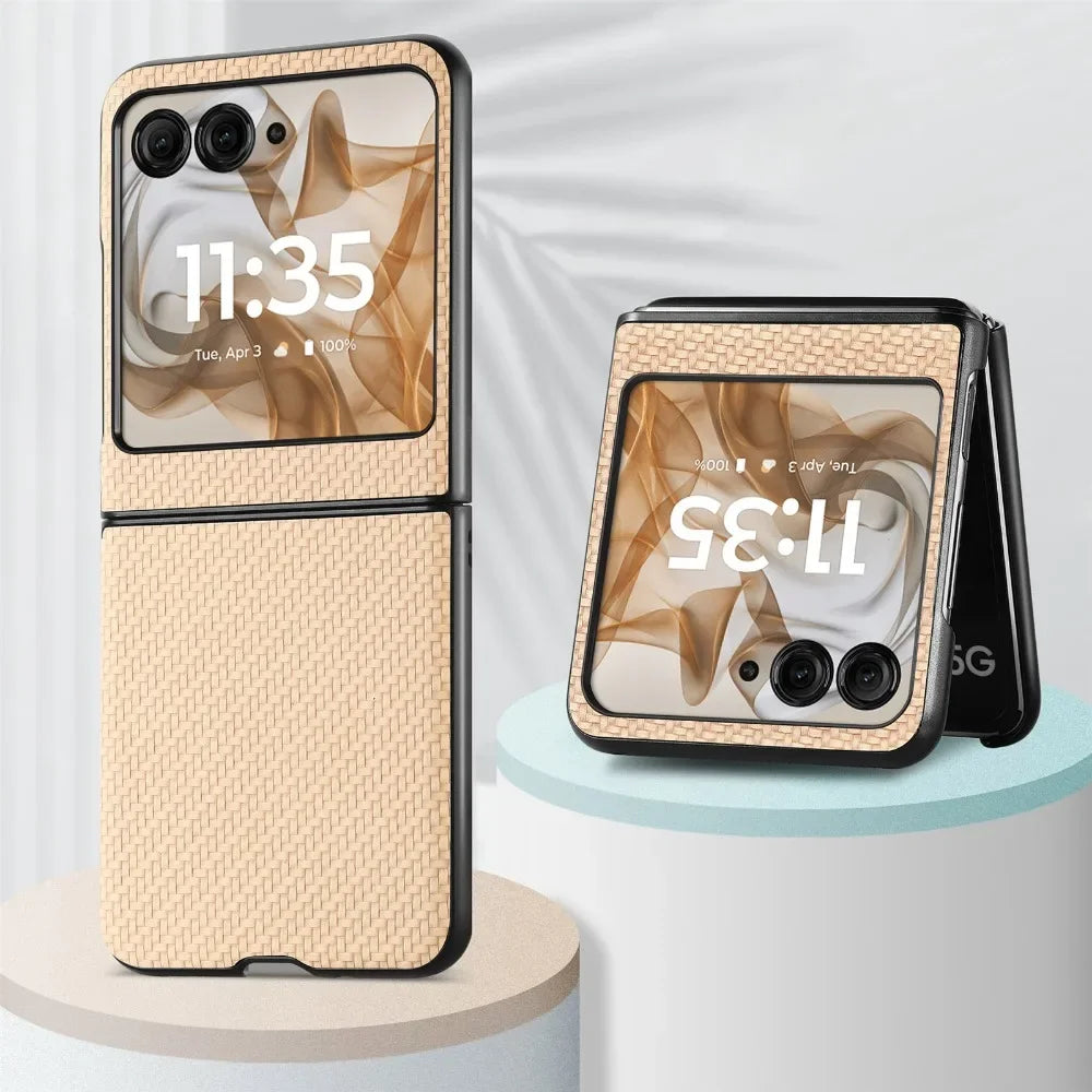 For Motorola Razr 50 Ultra Mooto Razr40 Carbon Fiber Pattern Plain PU Leather Phone Case Solid Color Anti-drop Protective Cover