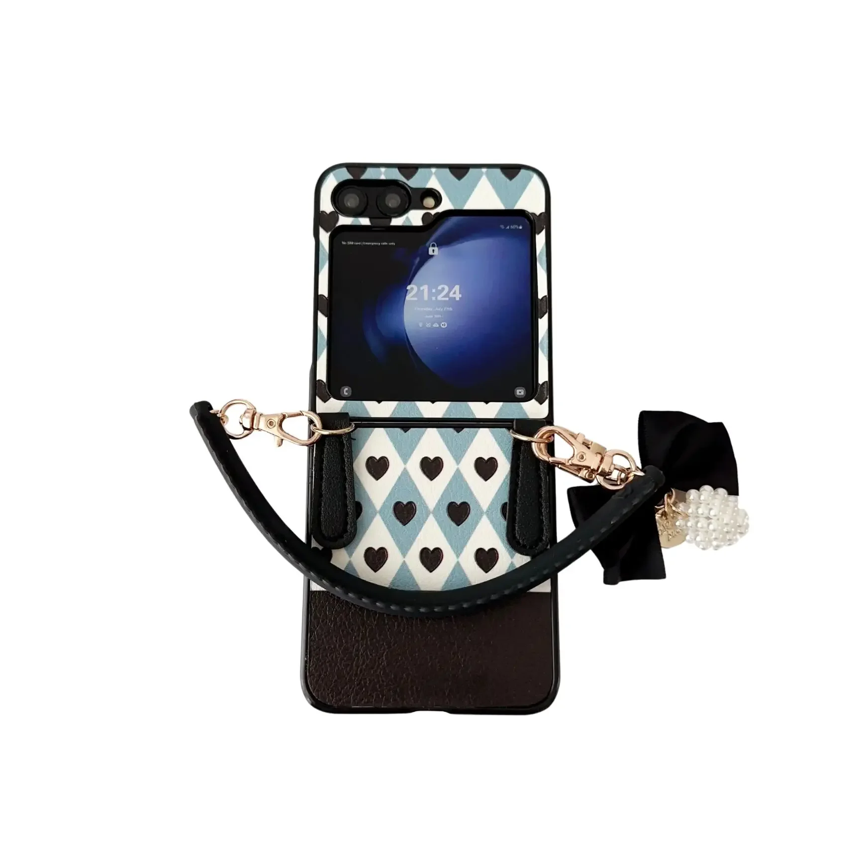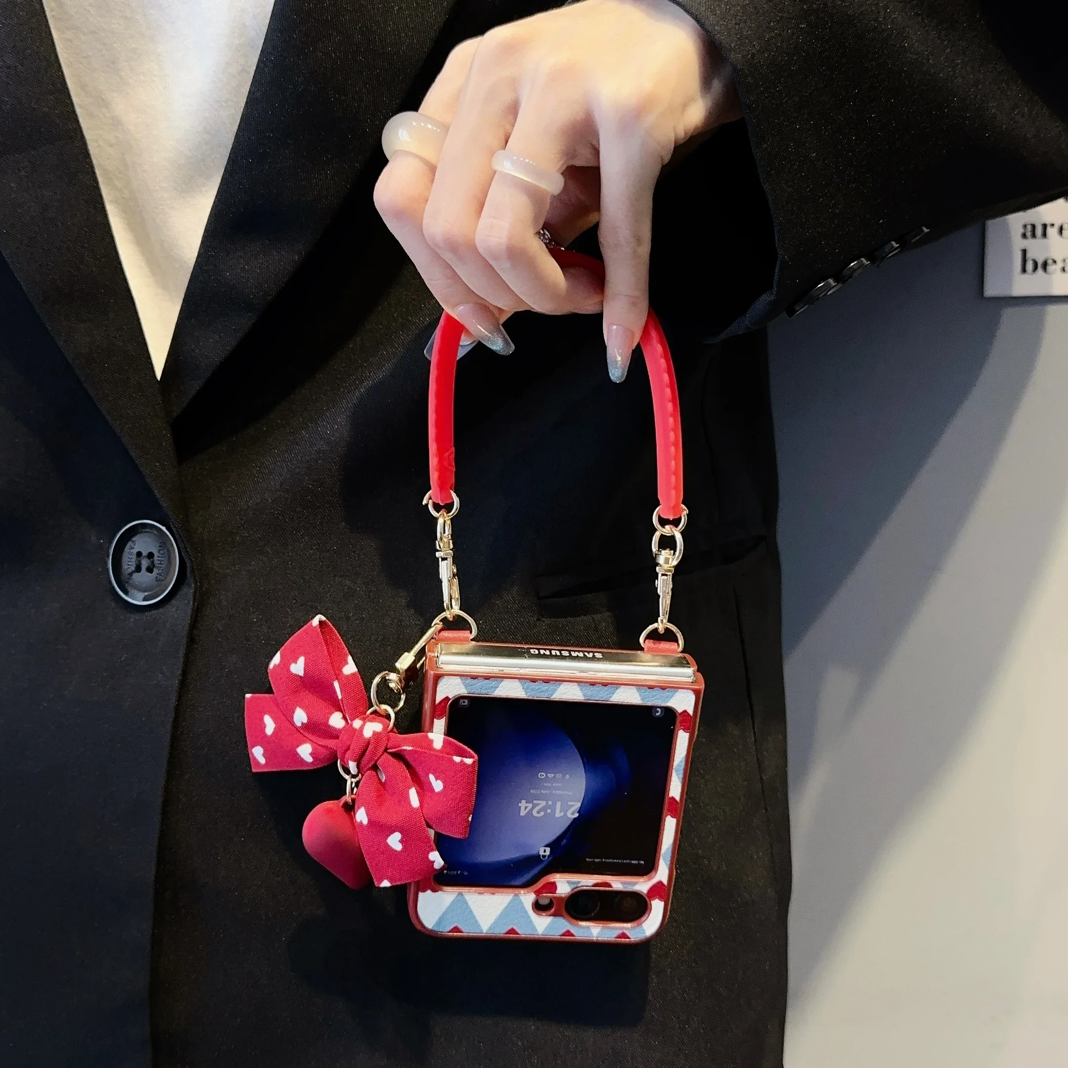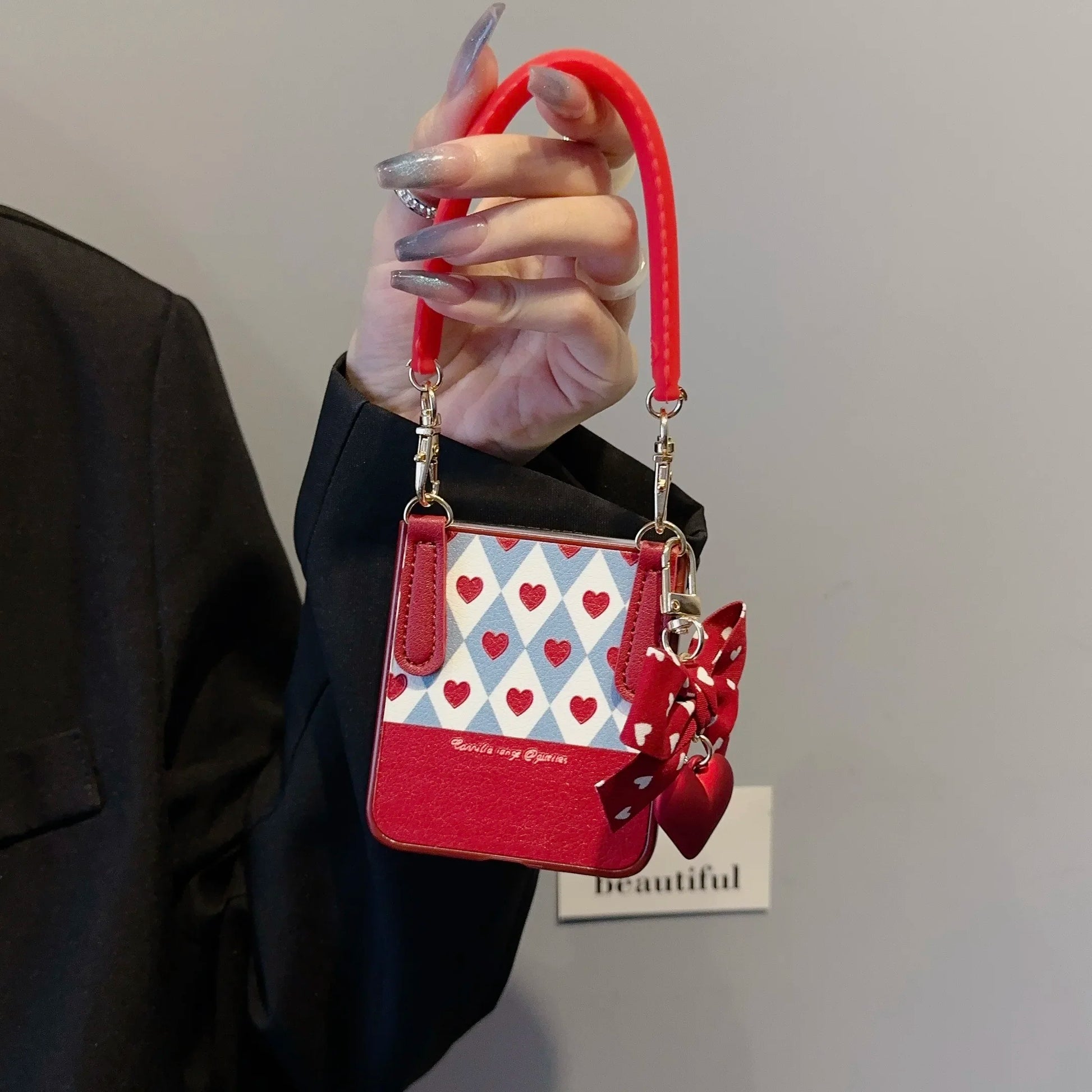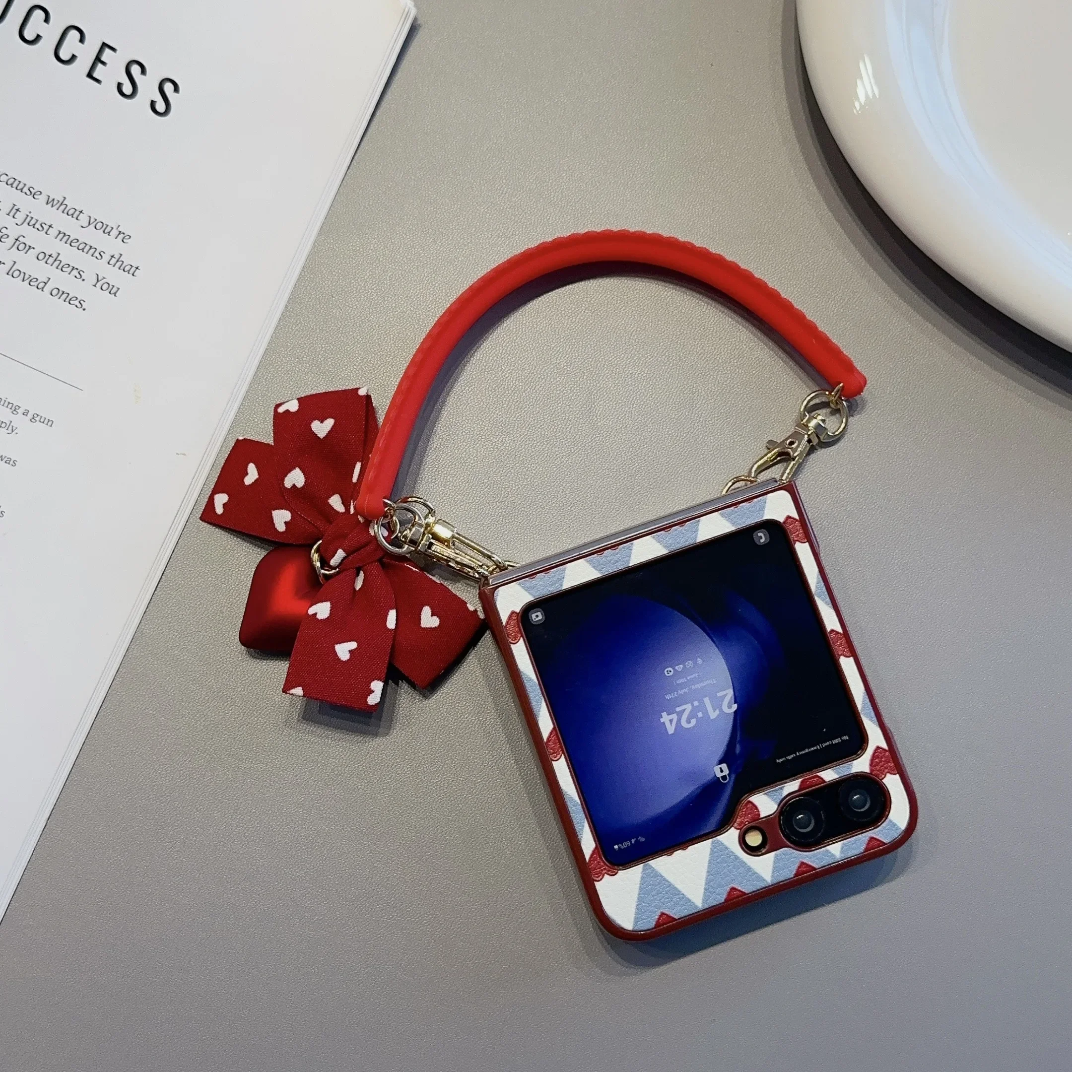 For Motorola Razr 60 Ultra Razr50Ultra 2025 Plus Case Unique Fashion Heart Bowknot Silicone Strap Wrist Leather Phone Case Cover