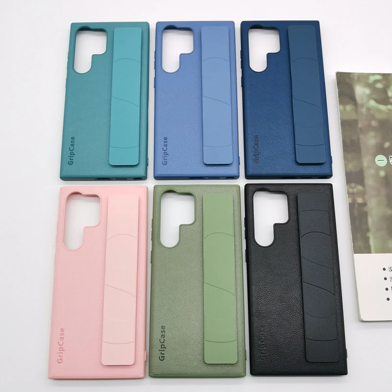 For Samsung Galaxy S22 S23 S24 S25 Plus Ultra Case Leather Grip Cover Back Protective Cover S25+ Wrist Strap Leatherette Cover