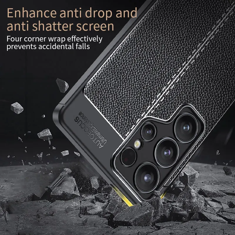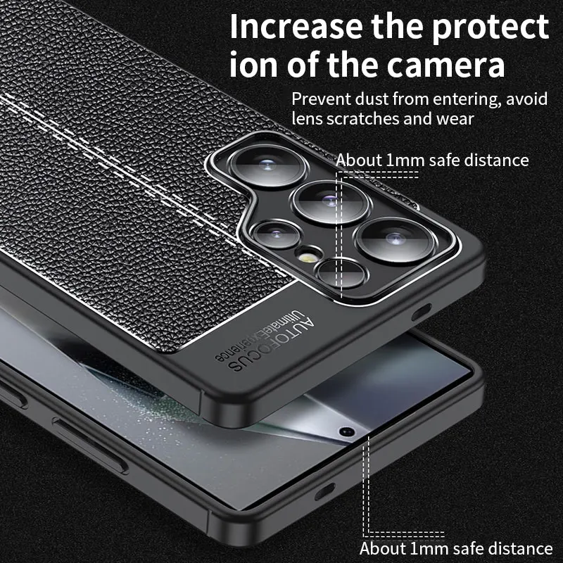 For Samsung Galaxy S25 Shockproof phone case Genuine leather textured soft silicone cell phone back cover For S25 PULS ULTRA