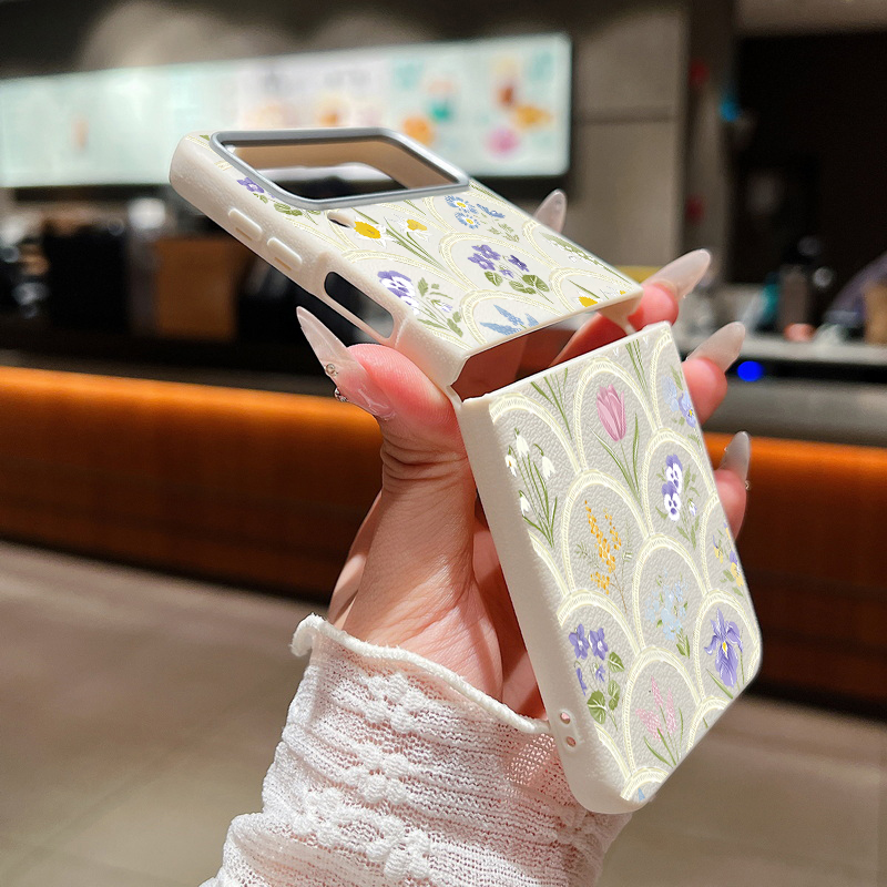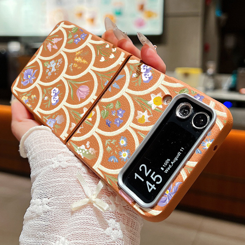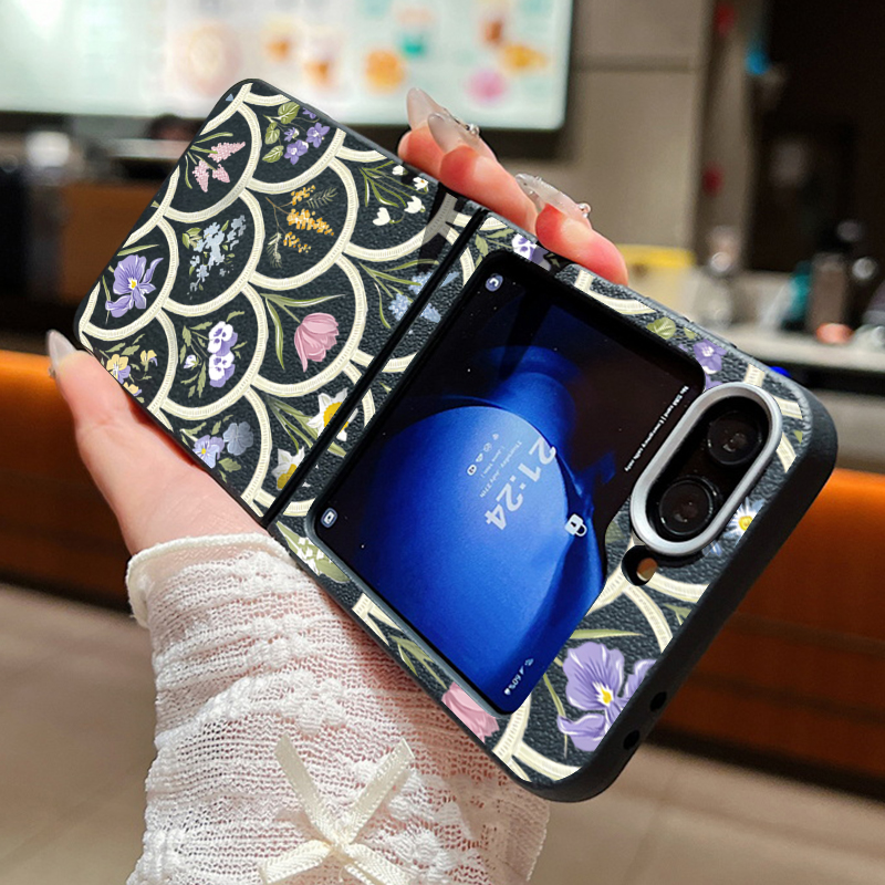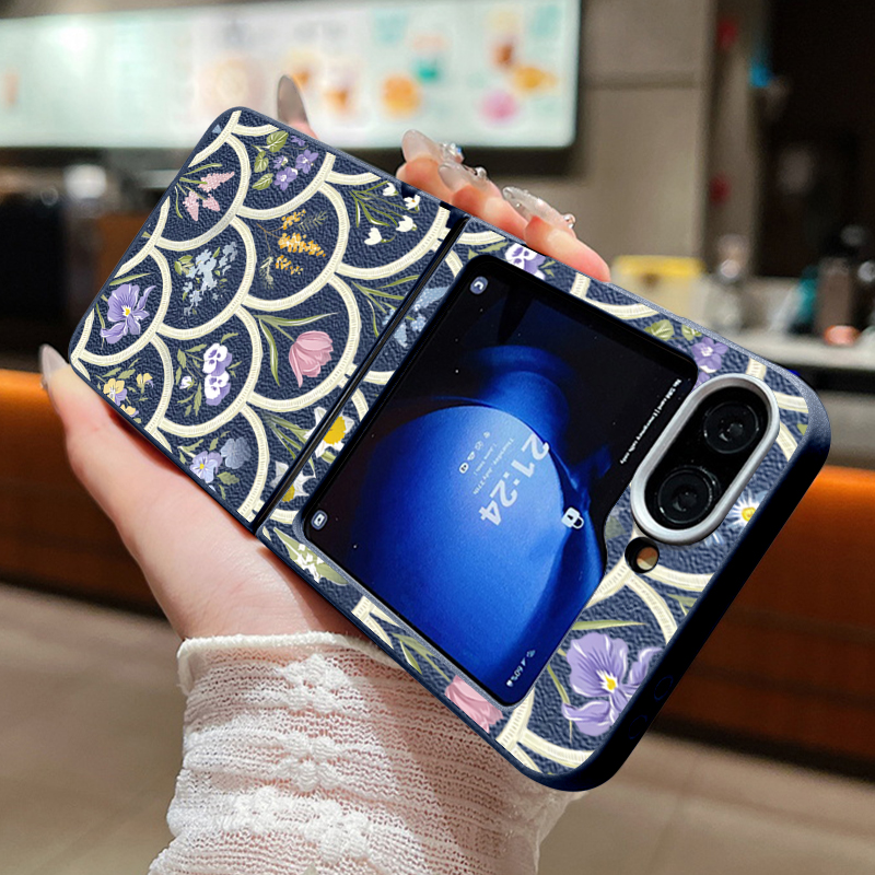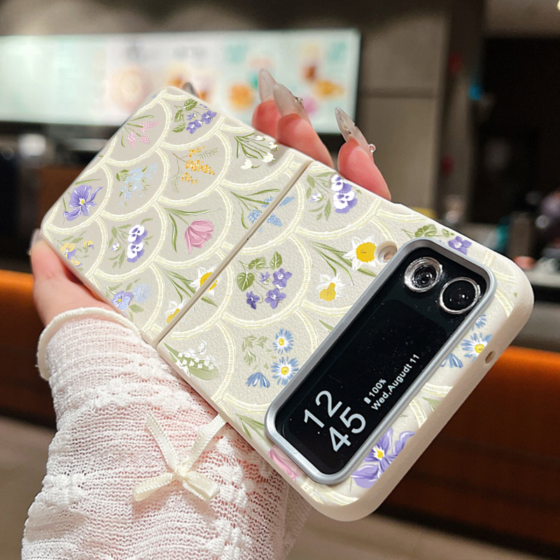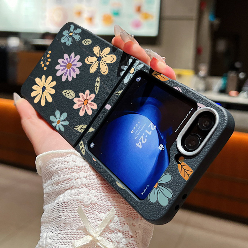 For Samsung Galaxy Z Flip 5 6 3 4 5G Cartoon Flowers Soft Case Leather Texture TPU Folding Phone Cover For Samsung Z Flip5 Flip4