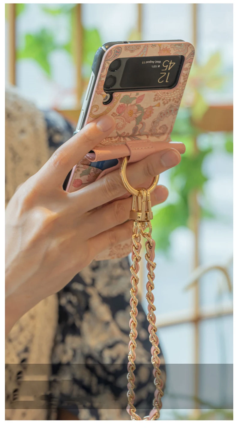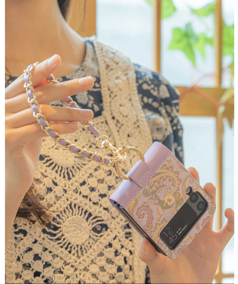 For Samsung Galaxy Z Flip 7 6 Case Flip5 4 3 Folding Screen Case Totem Texture Premium Leather Premium Elegant Trendy Phone Case