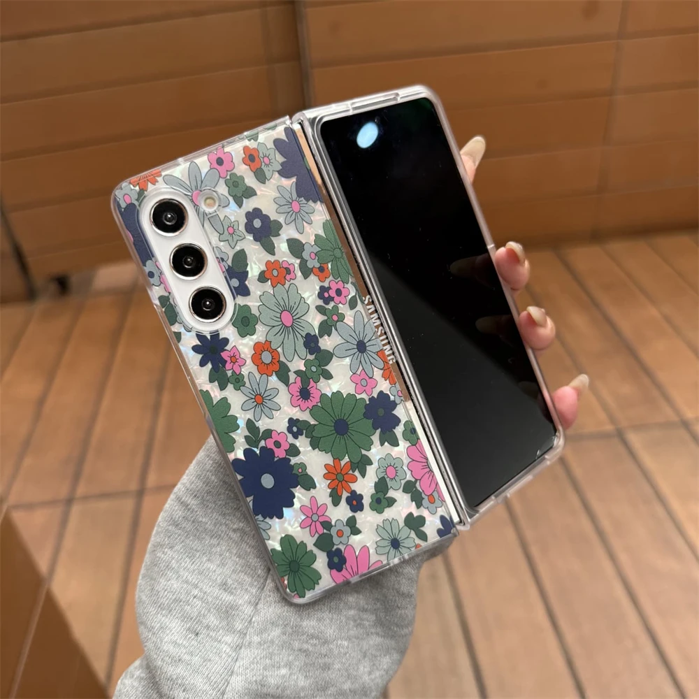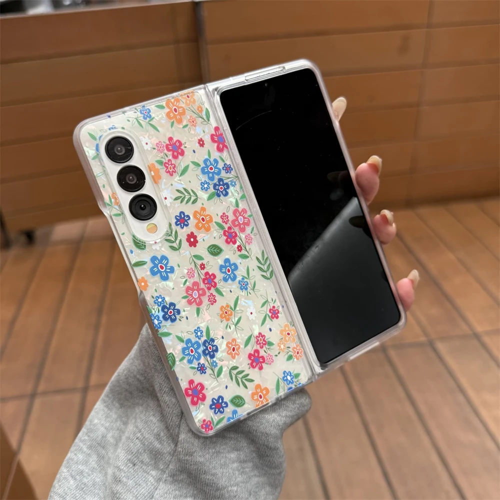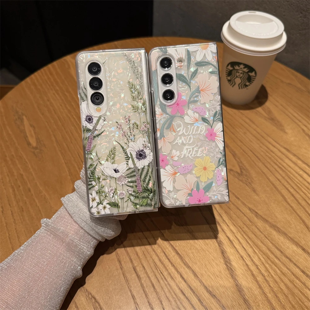 for Samsung Galaxy Z Fold 7 5G Hard PC Phone Case Floral Shell for Z Fold 7 6 5 4 3 Drop-Proof Protective Cover