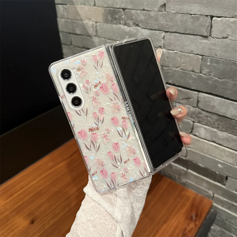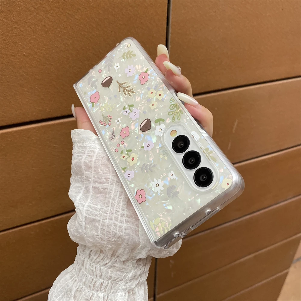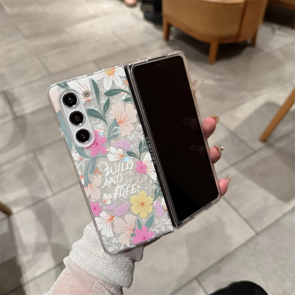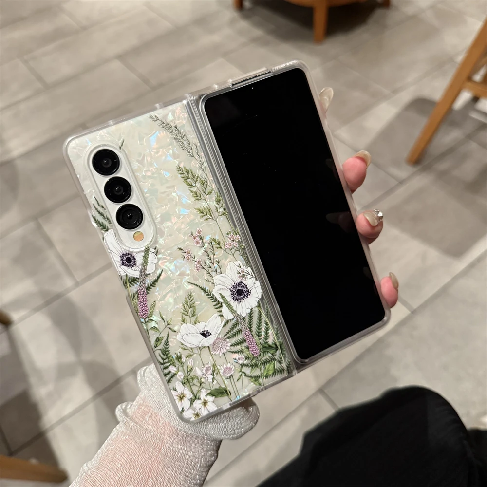 for Samsung Galaxy Z Fold 7 5G Hard PC Phone Case Floral Shell for Z Fold 7 6 5 4 3 Drop-Proof Protective Cover