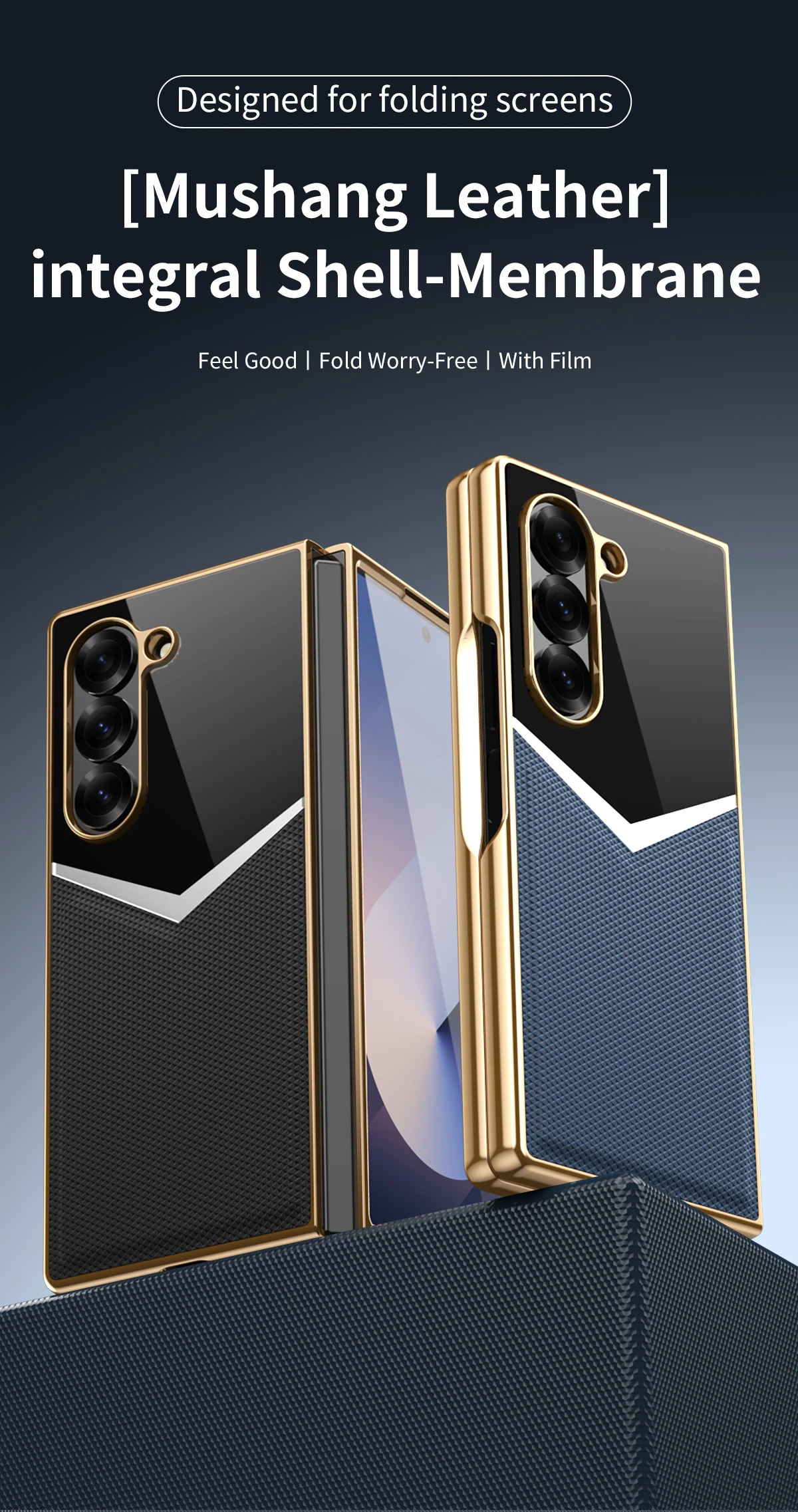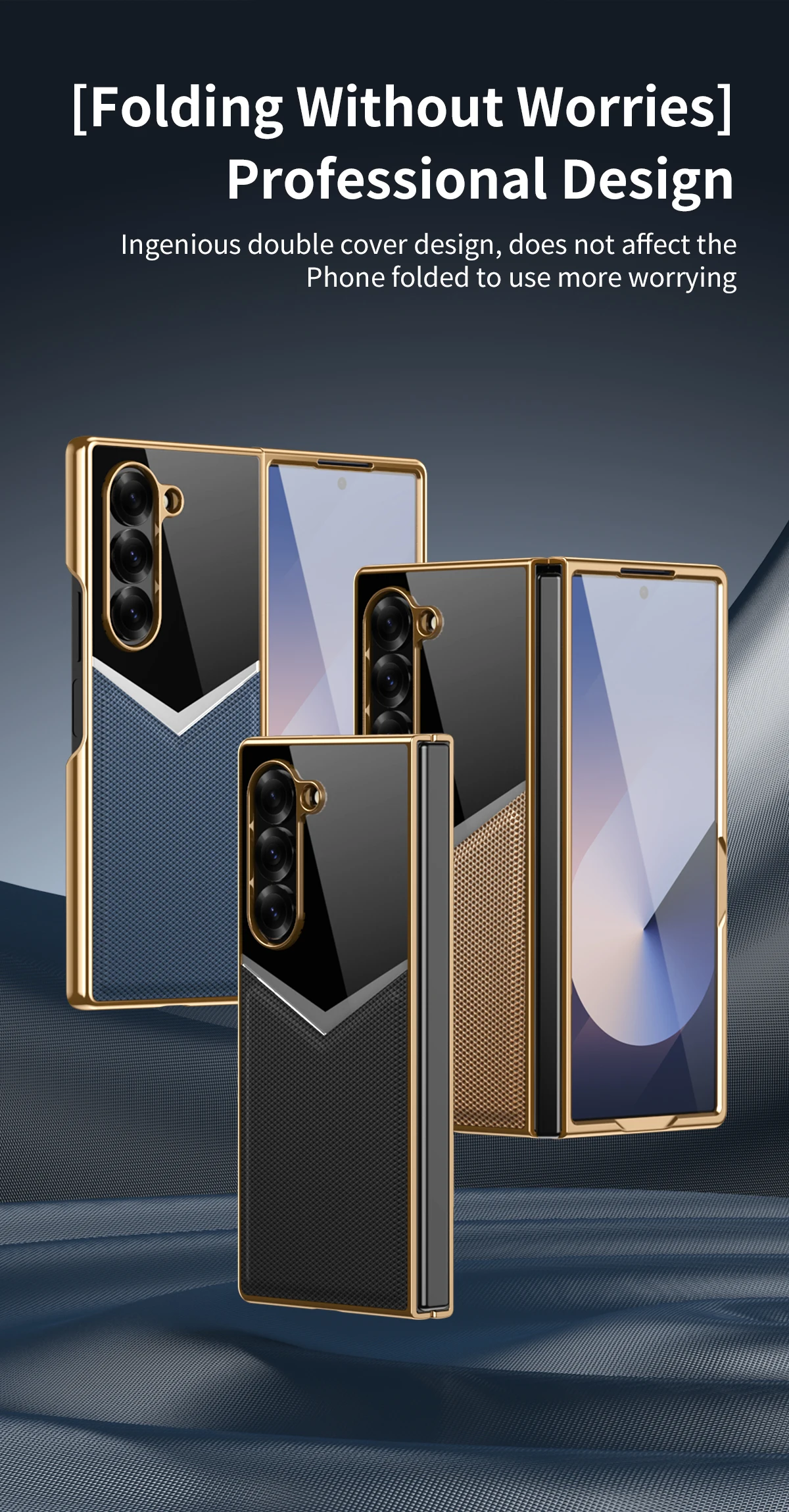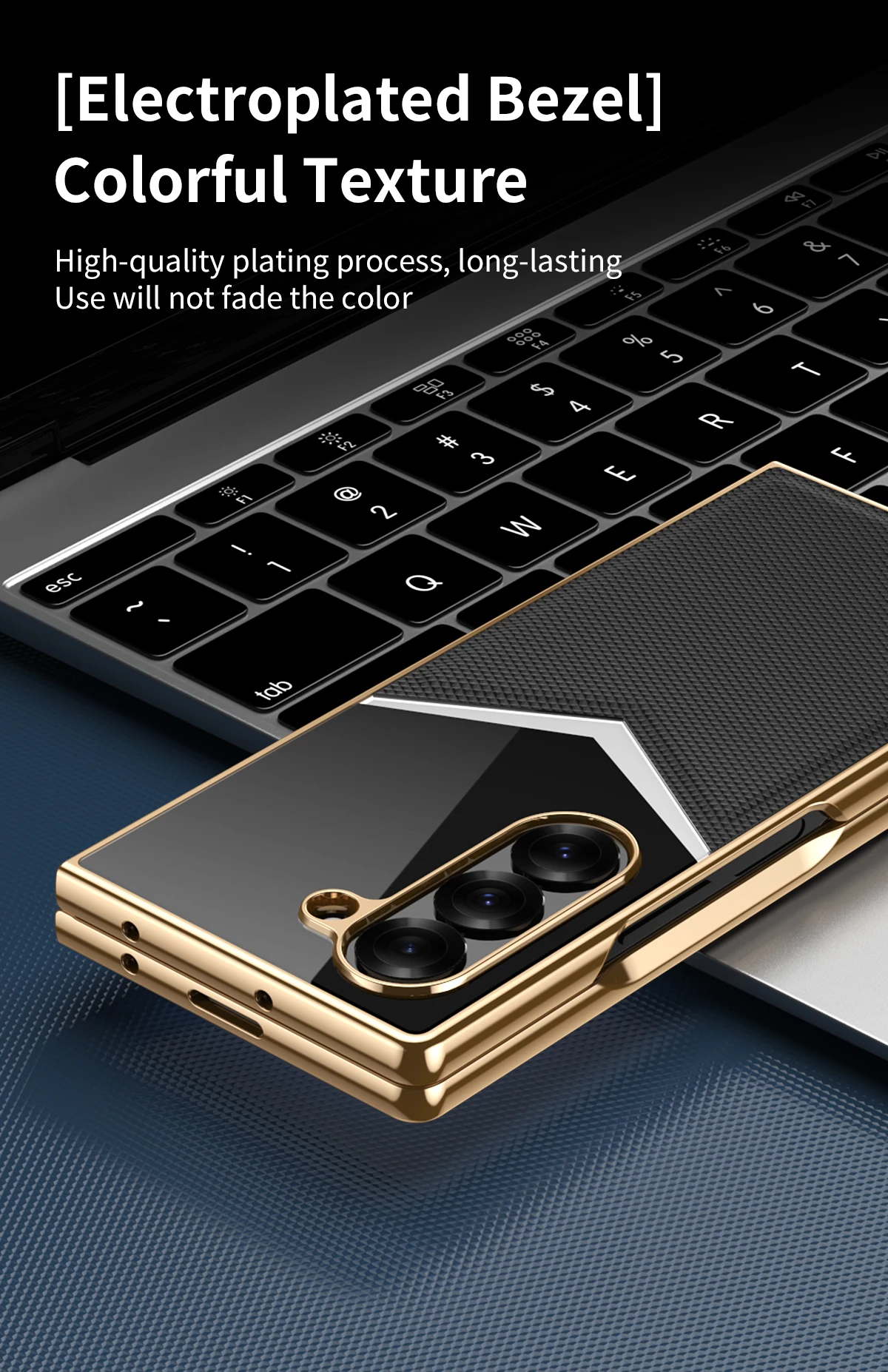 For Samsung Galaxy Z Fold 7 6 5 4 3 Electroplated PC Color Blocked Leather Tempered Film Shockproof Folding Phone Case