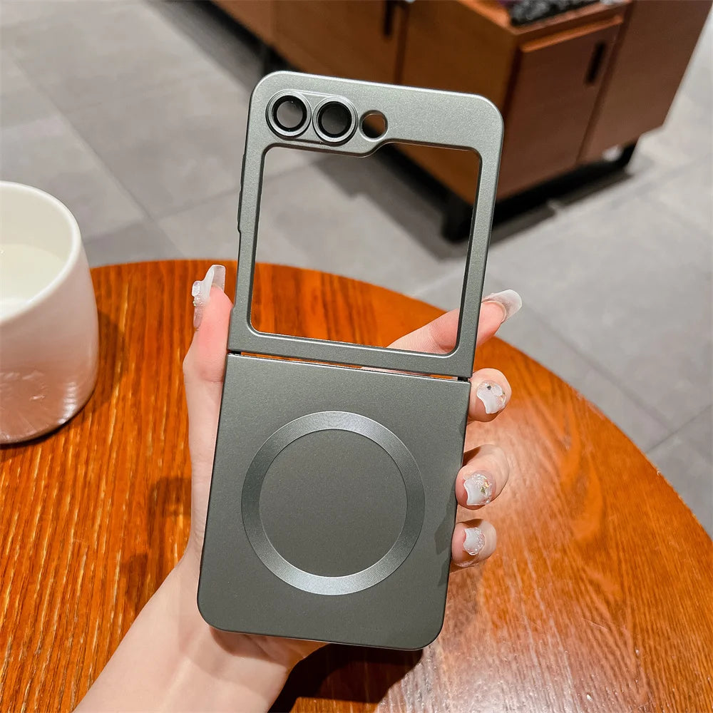 for Samsung ZFlip 4 Luxury for Magsafe Matte Case for Samsung Galaxy Z Flip 6 4 3 5 7 Flip4 Wireless Charger Soft Silicone Cover