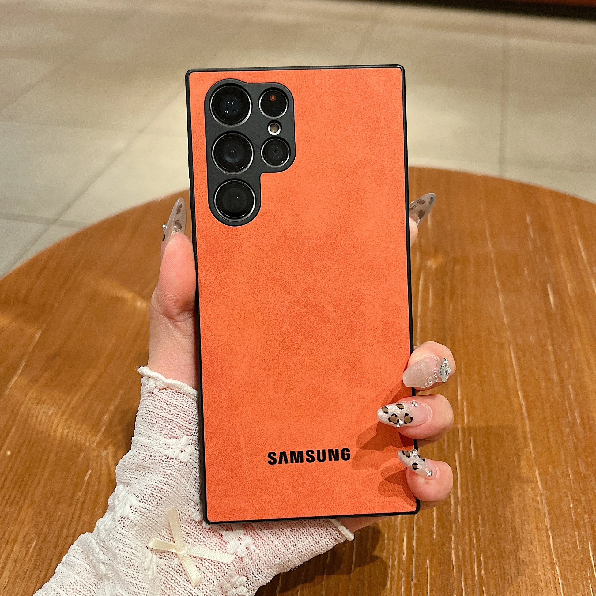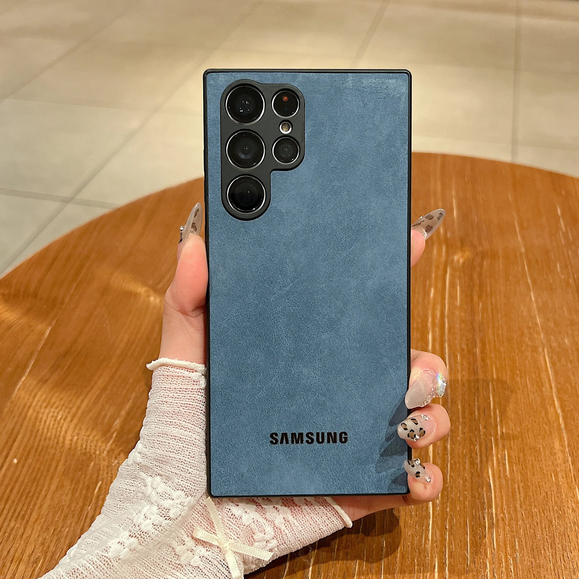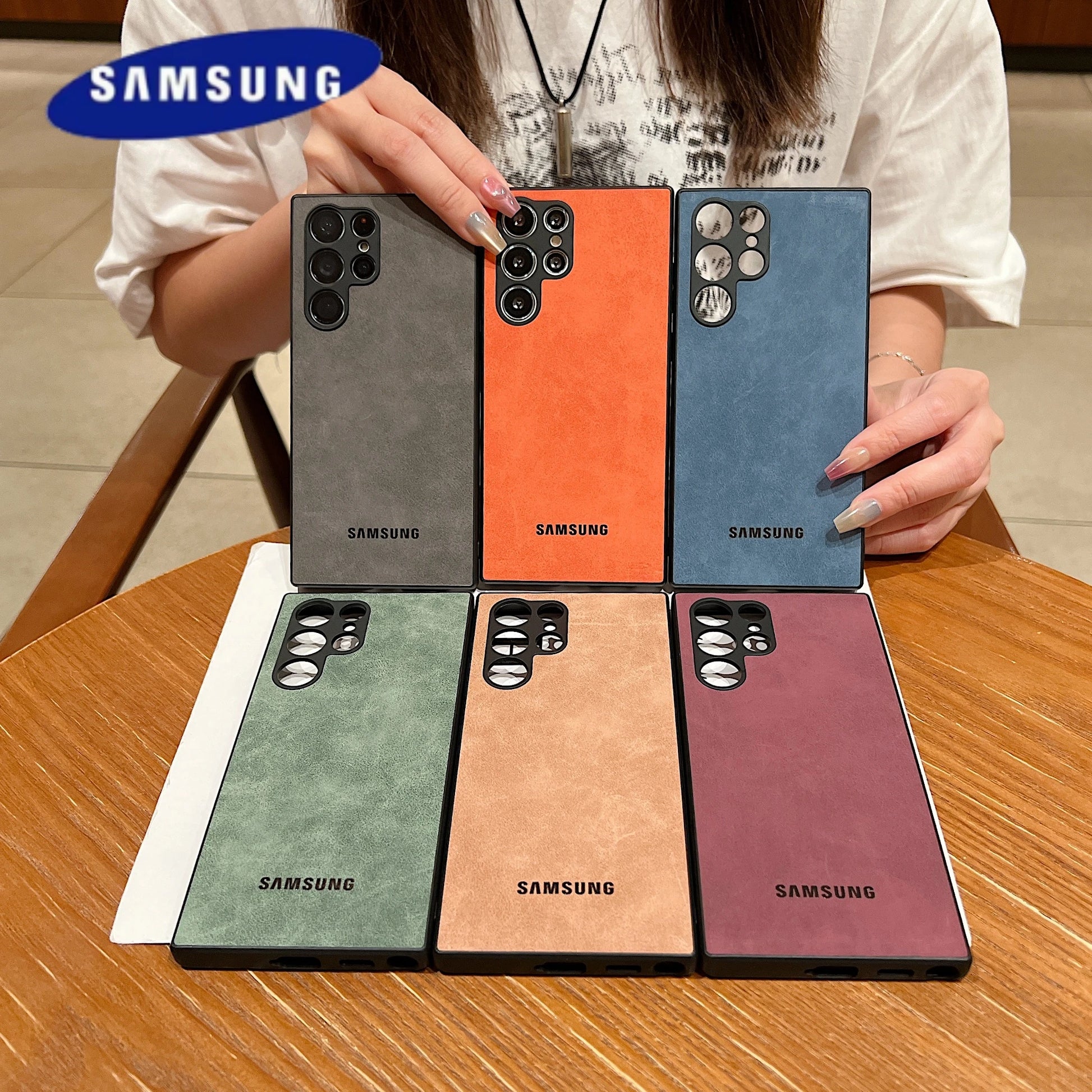 Full Lens Protector Case Samsung Galaxy S25 S24 S23 FE S22 S21 Ultra Plus Sheepskin Leather Back Cover Soft Lambskin Shockproof