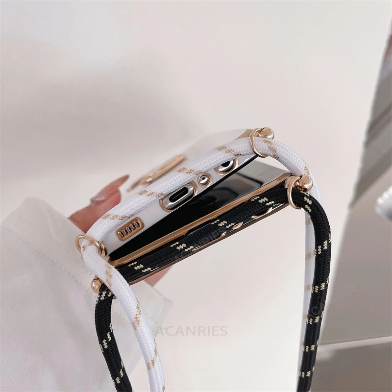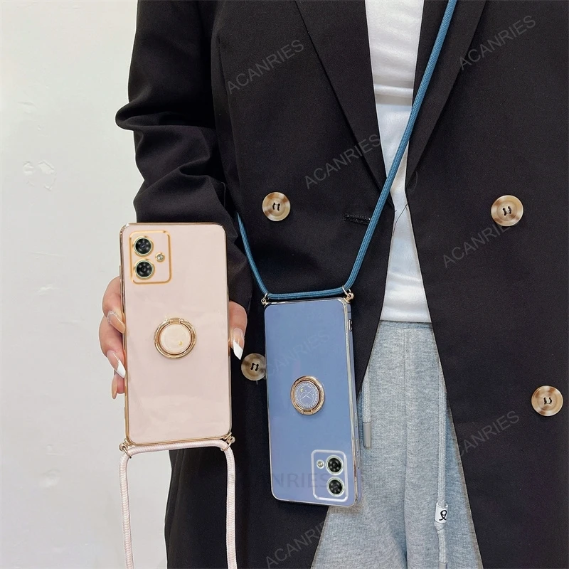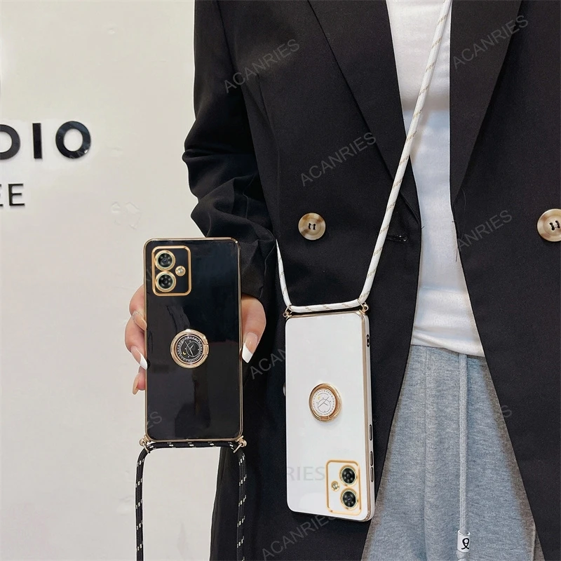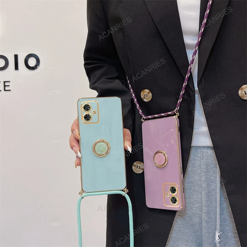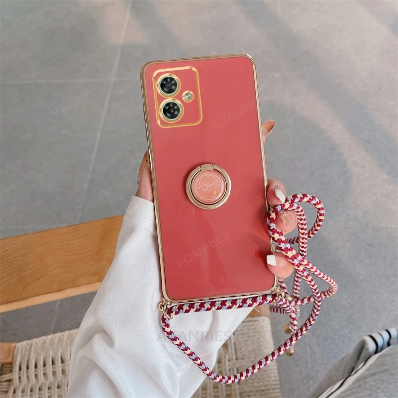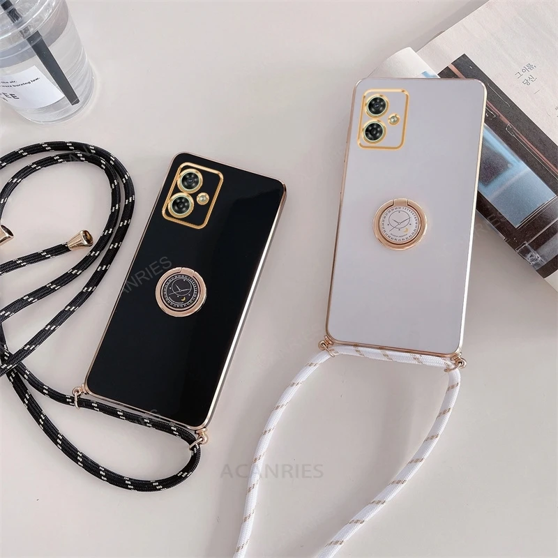 G 84 54 85 Luxury Plating Crossbody Lanyard Case For Motorola Moto G54 G84 G85 G35 G34 G24 G14 5G Ring Holder Back Cover