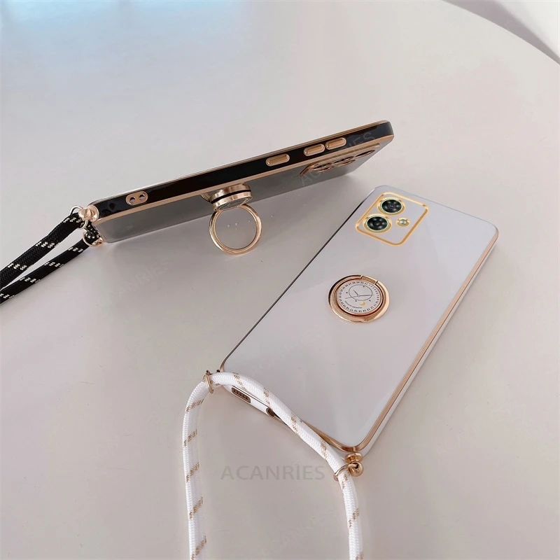 G 84 54 Luxury Plating Crossbody Lanyard Case For Motorola Moto G54 G84 5G Ring Holder Back Cover