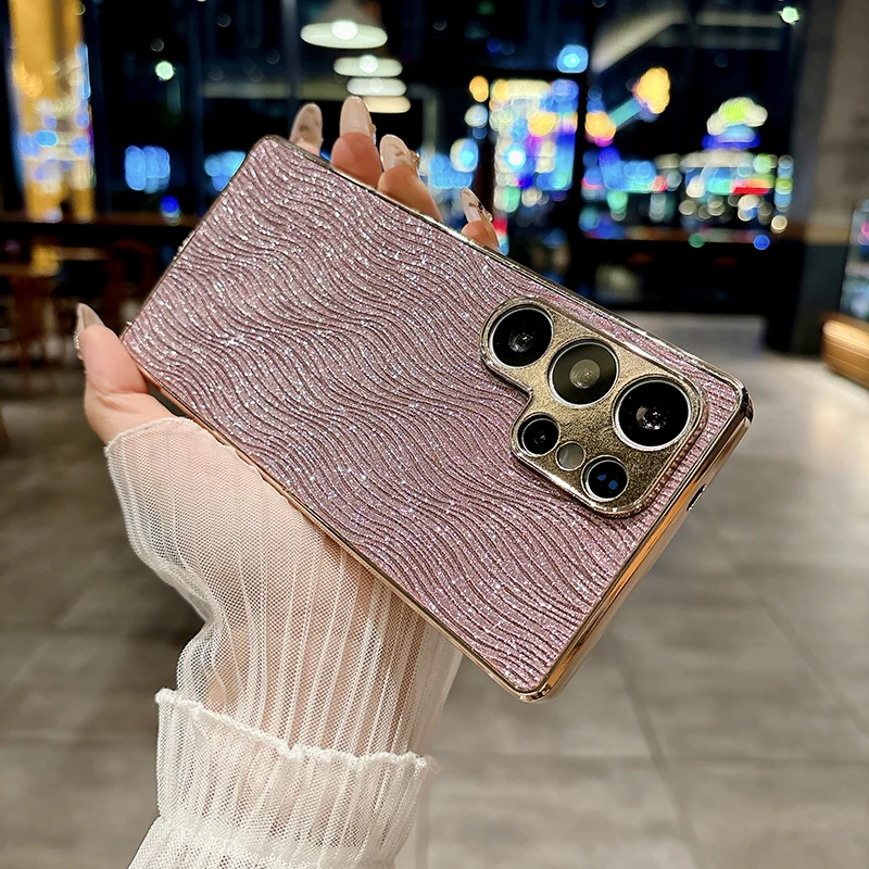 Glitter Rhinestone Shiny Shockproof Cover For Samsung Galaxy S23 FE S24 S25 Edge S24 Ultra Bling Sparkle Girls Pink Phone Case