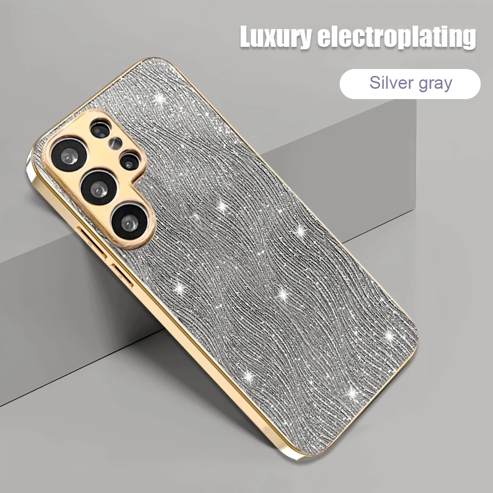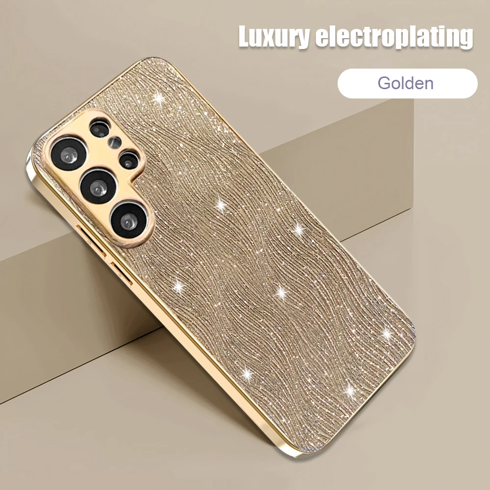 Glitter Water Ripple Case for Samsung Galaxy S25 S24 S23 Ultra S25 Edge S25 Plus S24 FE S23FE Gold Plating Hard Shockproof Cover