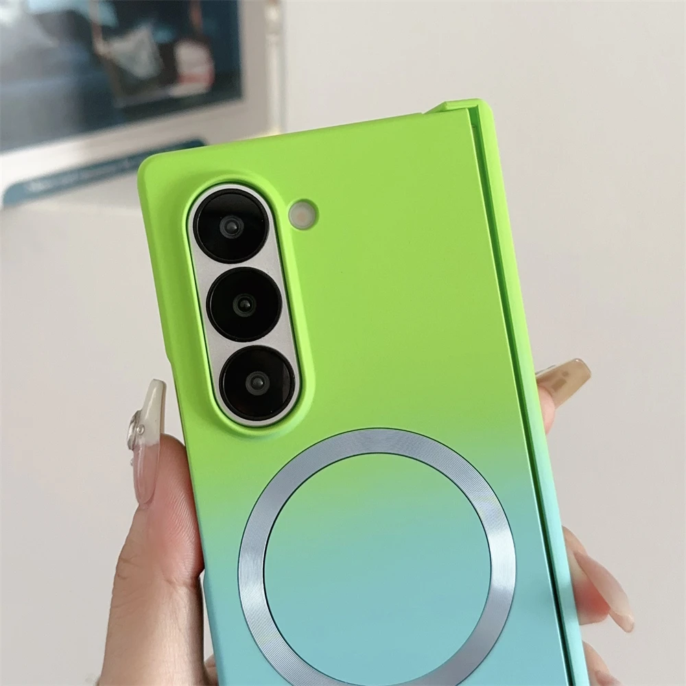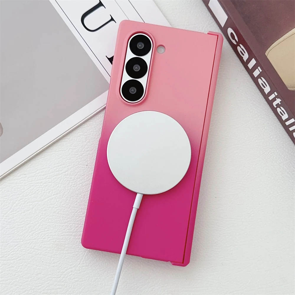 Gradient Dual Color Magnetic Liquid Silicone Phone Case for Samsung Galaxy Z Fold 7 6 5 4 Zfold3 Case For Magsafe Charging Cover